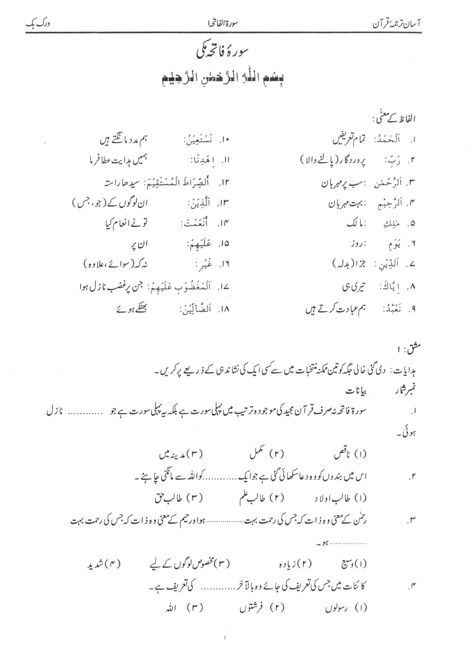 - آسان ترجمہ قرآن - ورک بک آسان ترجمہ قرآن - ورک بک