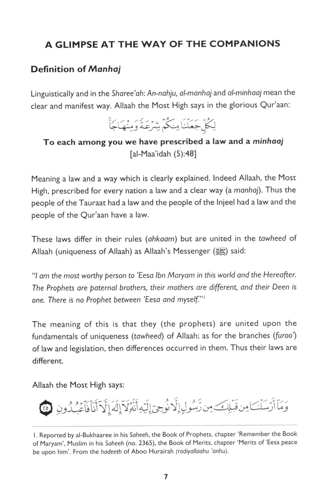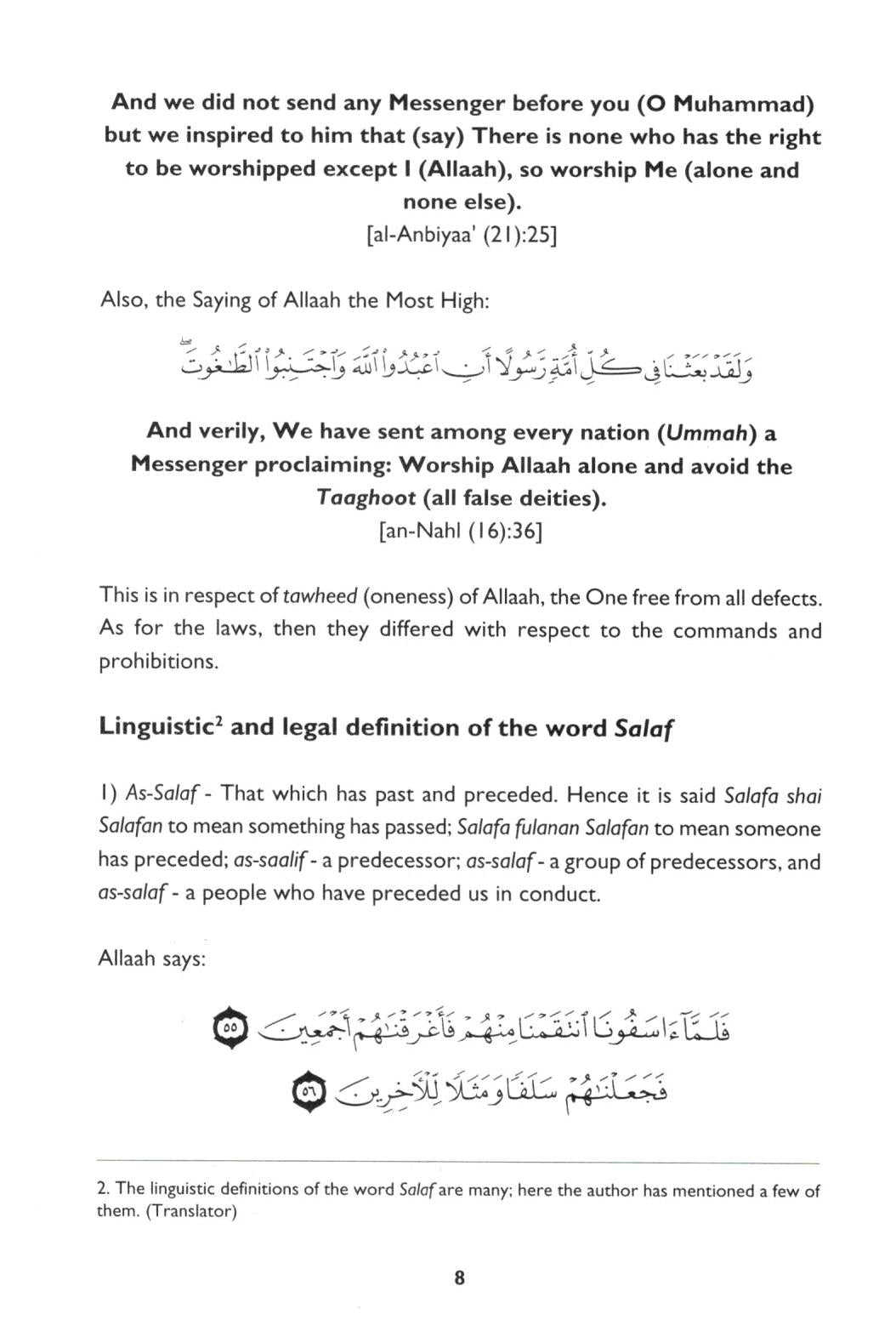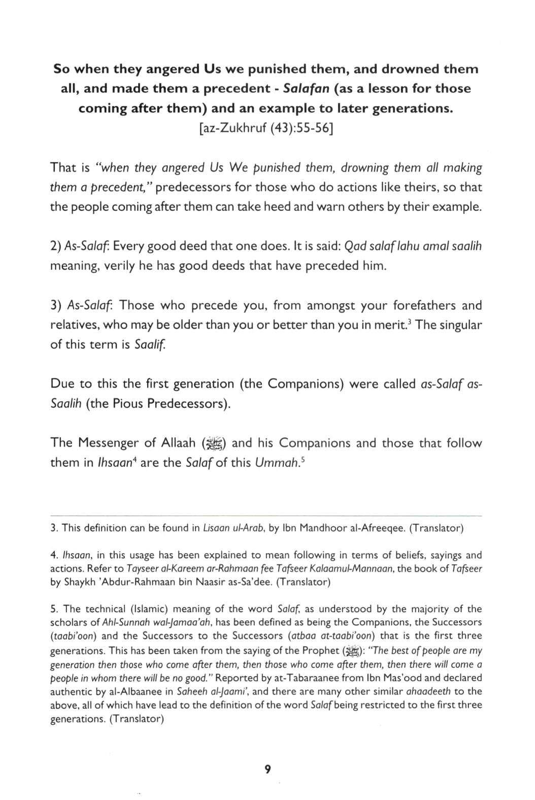 About the Book: This is an abridgement of a small treatise written by the renowned scholar Shaykh 'Abdul-Qaadir al-Arna'oot who has specialized in the field of Hadeeth. His most famous works include the checkings of Zaadul M'aad by Ibn al-Qayyim, Jaami'-ul-Usool by Ibn al-Atheer and al-Adhkaar by Imam an-Nawawee. This is the first treatise in a series regarding the Methodology of the Prophet (pbuh) and his companions (may Allah be pleased with them). It is the methodology that was implemented by the Prophet (pbuh) and adhered to by the best of generations (the Companions), giving them success in this world and ultimate success in the Hereafter. The series is entitled Tasfiyah wat Tarbiyah, which are the two main instruments of this Prophetic Methodology that can be used to help us to remain firmly established upon the deen of Islam.