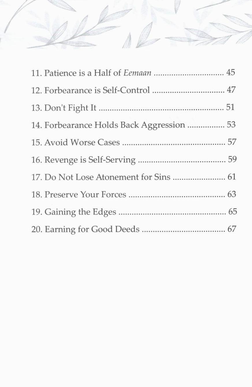 Shaykh al-Islam Ibn Taimiyyah رحمه الله mentioned the virtues of returning forbearance and kindness when envy and hurt were directed toward us. He summarized 20 formulas that will help us how to exercise patience in this invaluable book.