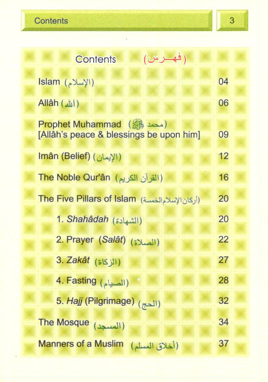 About the Book: This small colourful booklet goes over all the basics of Islam. It is very good for non-Muslims as well as for Muslims. It is very good to teach students about Islam. Contents of this book: 1. Islam 2. Allah 3. Prophet Muhammad (SAW) 4. Iman (Belief) 5. The Noble Qur'an 6. The Five Pillars of Islam: Shahadah, Prayer, Zakat, Fasting Hajj. 7. The Mosque 8. Manners of a Muslim.