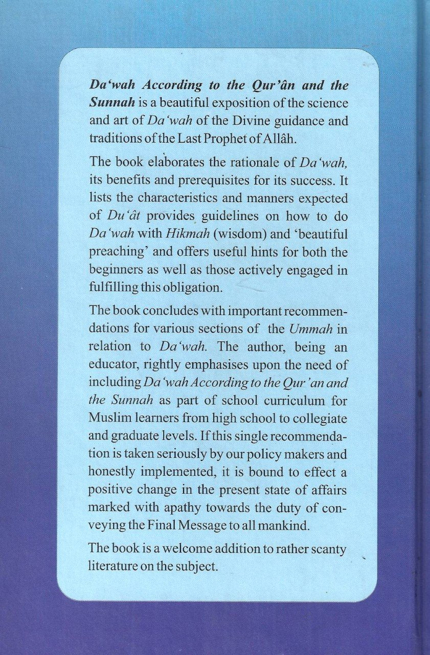 About the Book: Da'wah According to the Qur'an and the Sunnah is a beautiful exposition of the science and art of Da'wah of the Divine guidance and traditions of the Last Prophet of Allah. The book elaborates the rationale of Da'wah, its benefits and prerequisites for its success. It lists the characteristics and manners expected of Du'at provides guidelines on how to do Da'wah with Hikmah (wisdom) and 'beautiful preaching' and offers useful hints for both the beginners as well as those actively engaged in fulfilling this obligation. The book concludes with important recommendations for various sections of the Ummah in relation to Da'wah.