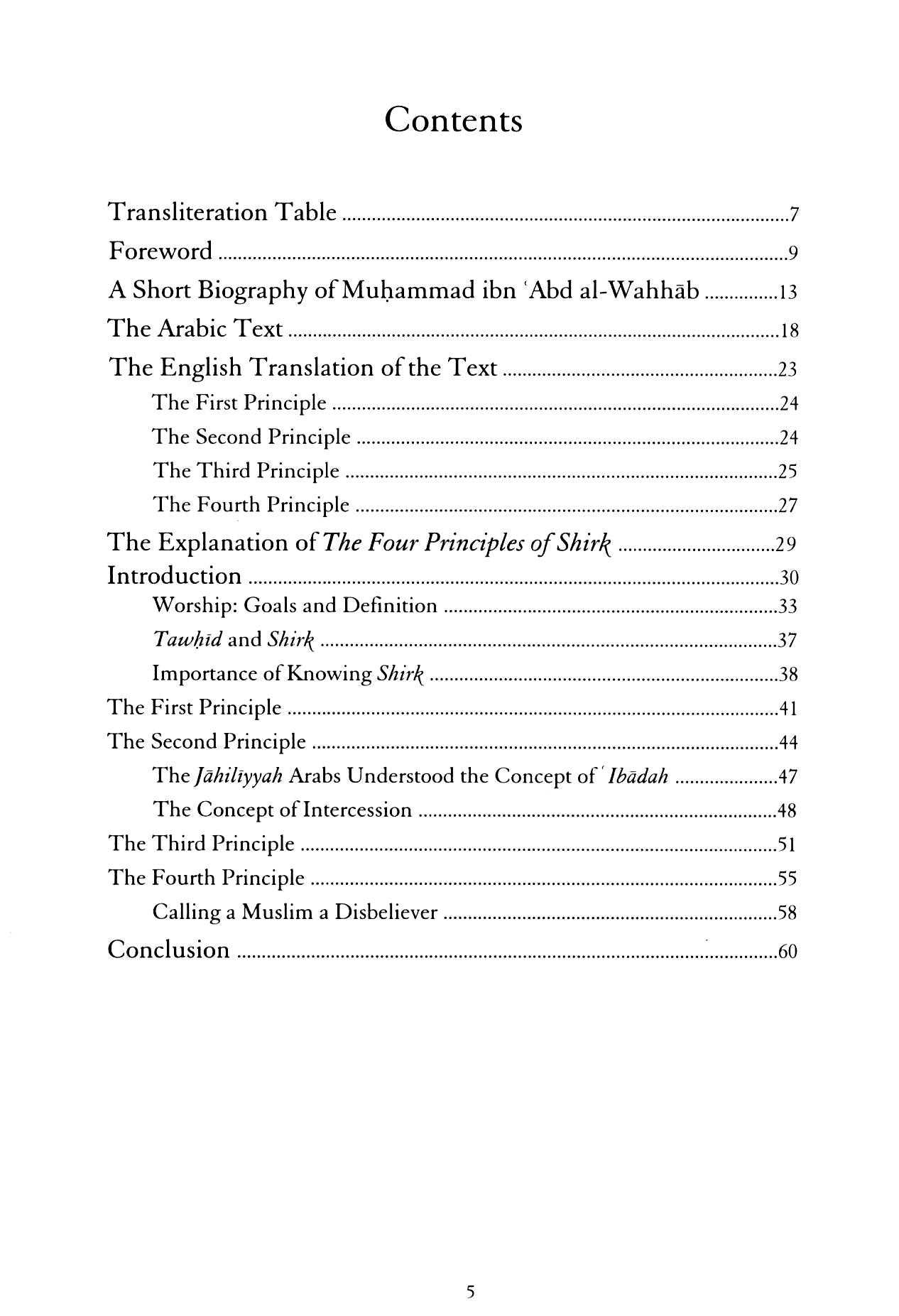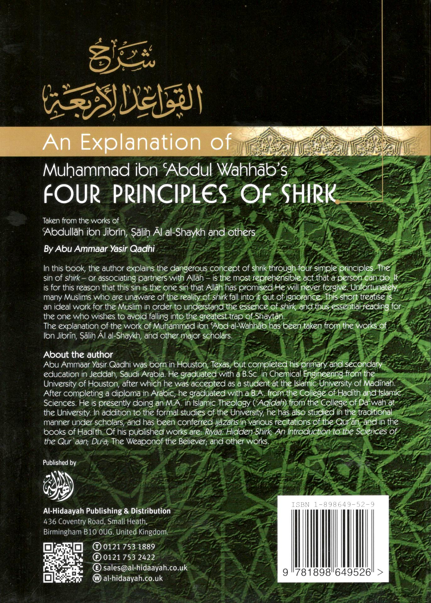 About the Book: In this book the author explains the dangerous concept of shirk through four simple principles. The sin of shirk - or associating partners with Allah - is the most reprehensible act that a person can do. It is for this reason that this sin is the one sin that Allah has promised He will never forgive. Unfortunately many Muslims who are unaware of the reality of shirk fall into it out of ignorance. This short treatise is an ideal work for the Muslim in order to understand the essence of shirk, and thus essential reading for the one who wishes to avoid falling into the greatest trap of shaytan. The explanation of the work of Muhammad ibn Abdul Wahhab has been taken from the works of Ibn Jibrin, Salih Al al-Sheikh, and other major scholars.