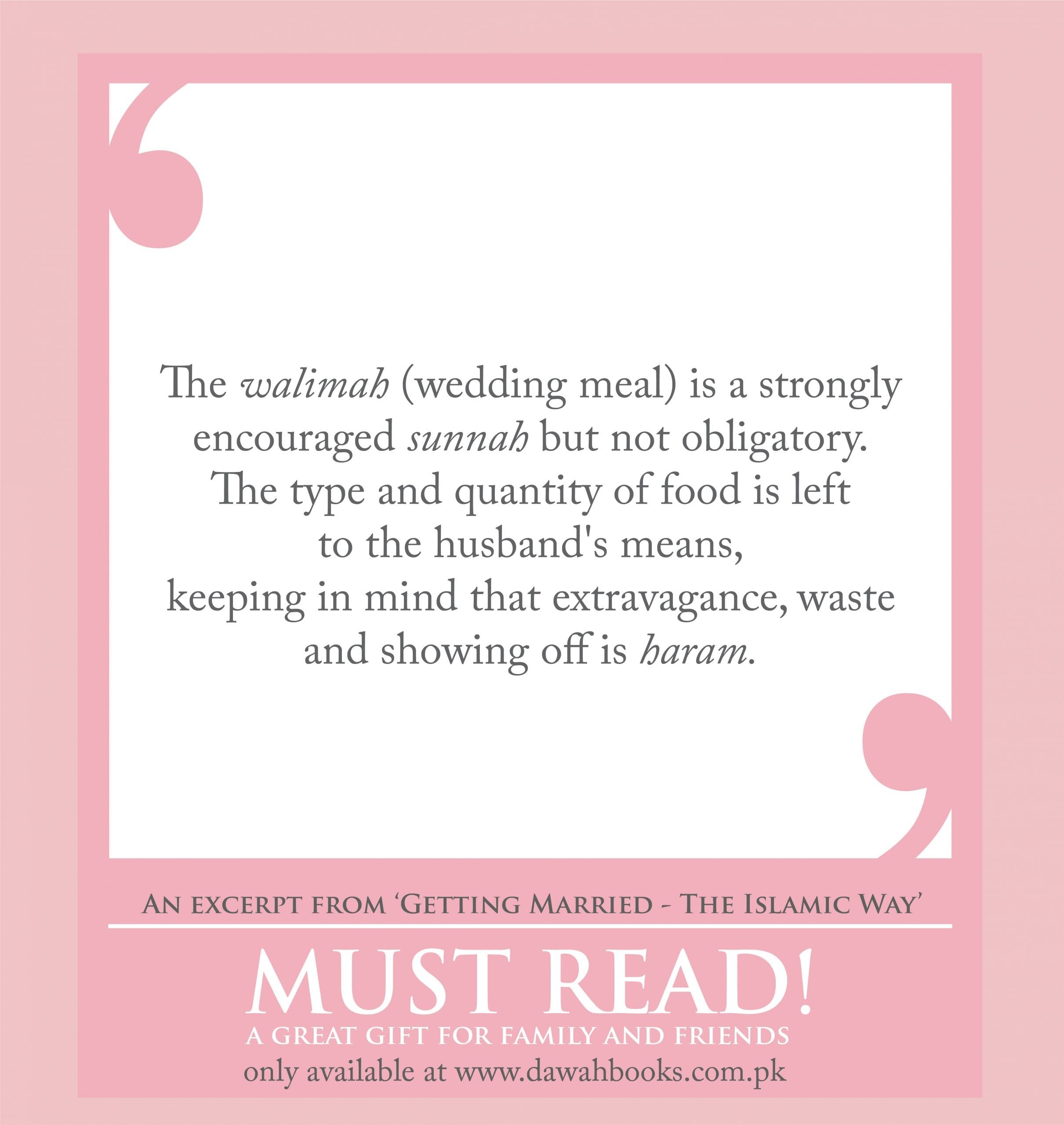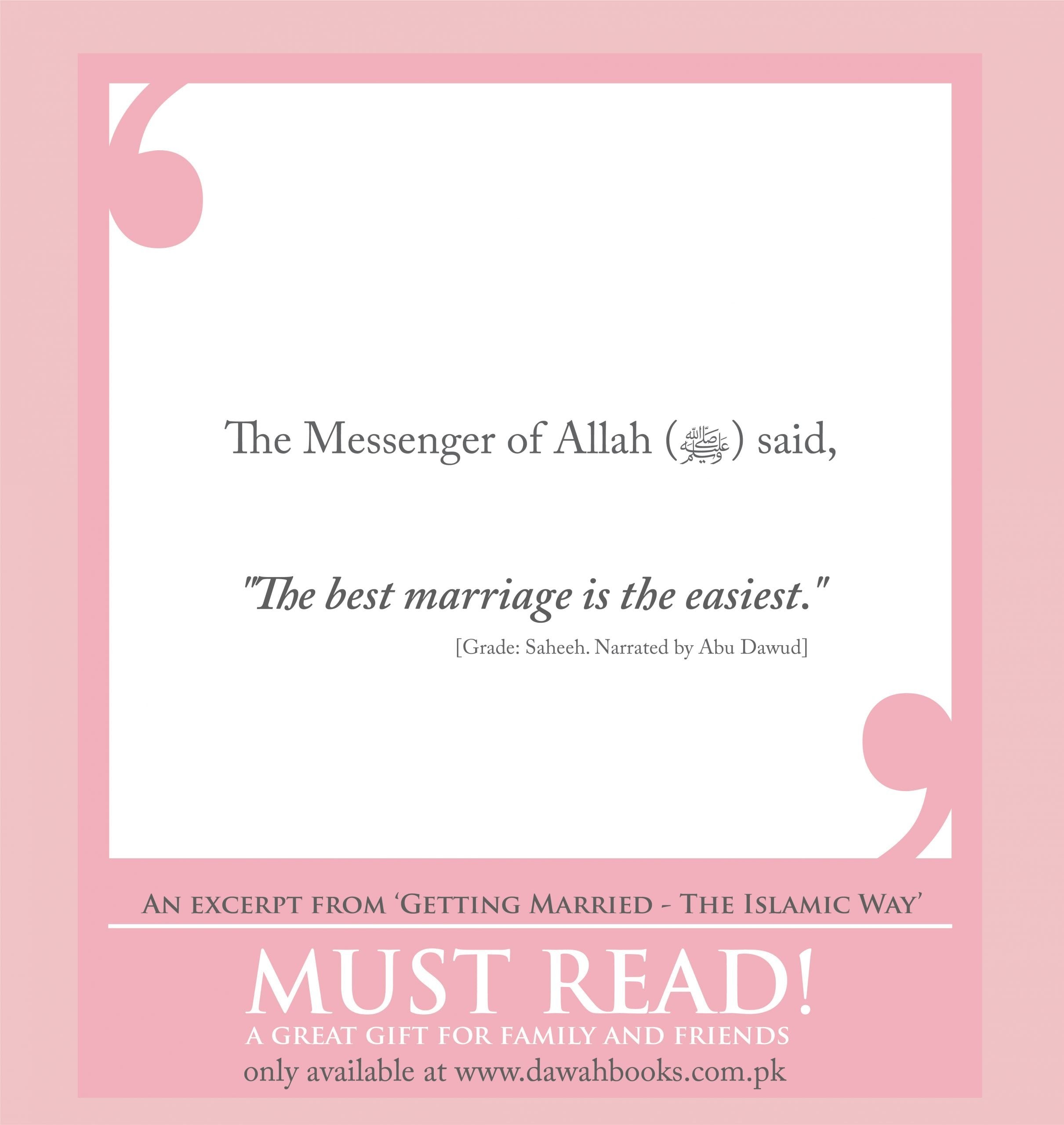I would recommend this book to everyone, especially parents, guardians and the youth who intend to marry sooner or later. It is much needed. The simplicity and ease of its description is itself an example of how a Muslim wedding should be. Marriage is such an important matter and should be treated with the greatest care. This booklet will teach you how to do that and attract lots of blessings towards the marriage.