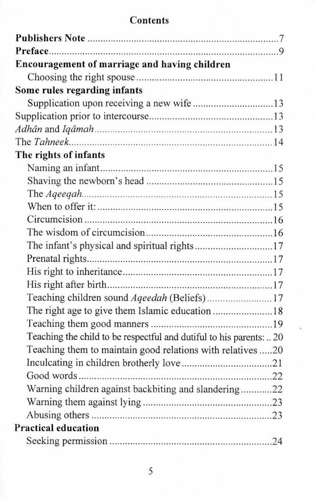 About the Book: Islam places great emphasis on the child, right from infancy to the age of puberty. The reason for this is to prepare him to become a good member of the community. Children learn more by example than by words. Telling our children what to do and not showing them by a good example is a hypocritical act and drives children to confusion and away from us. It is for this reason that we are presenting this booklet as a guideline for parents who are concerned about their present and future offspring.