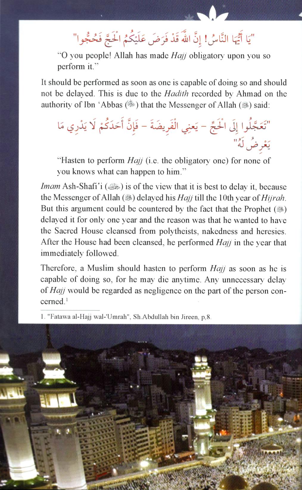 About the Book:The author calls attention to the most important things that those who intend to perform Hajj, Umrah or visiting the Prophet's Mosque in Madinah must have as provisions. The author mentions a considerable number of sayings of the people of knowledge and calling the attention of the reader to some important matters.