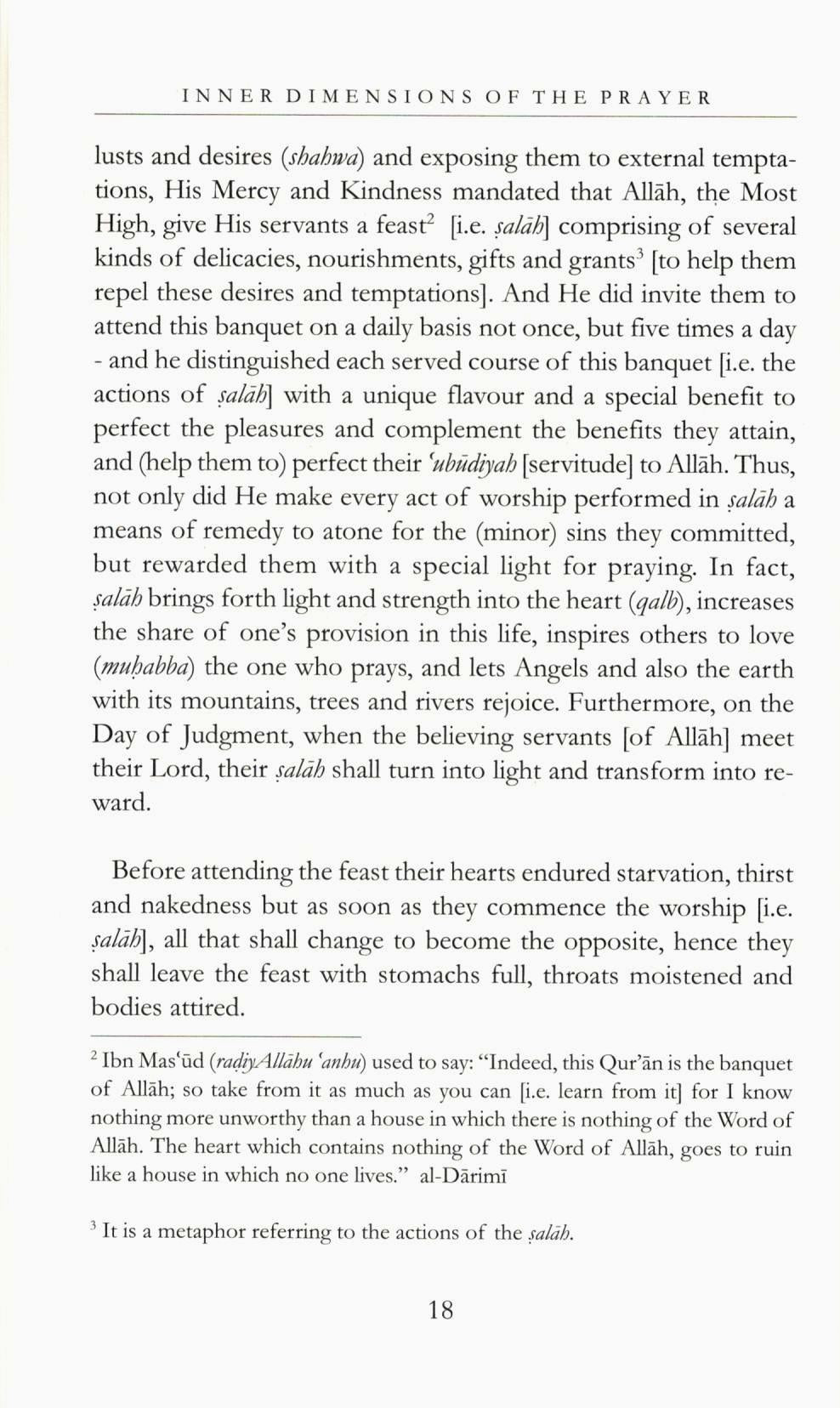 The rich literary style used by Ibn Qayyim itself is a delight to behold - and the translator has successfully maintained some of that imagery in the translation. This work will provide the reader with a unique insight into the prayer and its inner dimensions. It will be a truly uplifting experience that will reflect in the refreshing new light we see our prayer. Lackluster attitudes will be eliminated, especially of those who see prayer as a mere ritual of releasing themselves from its obligation, and will enliven us to become more careful and attentive within it