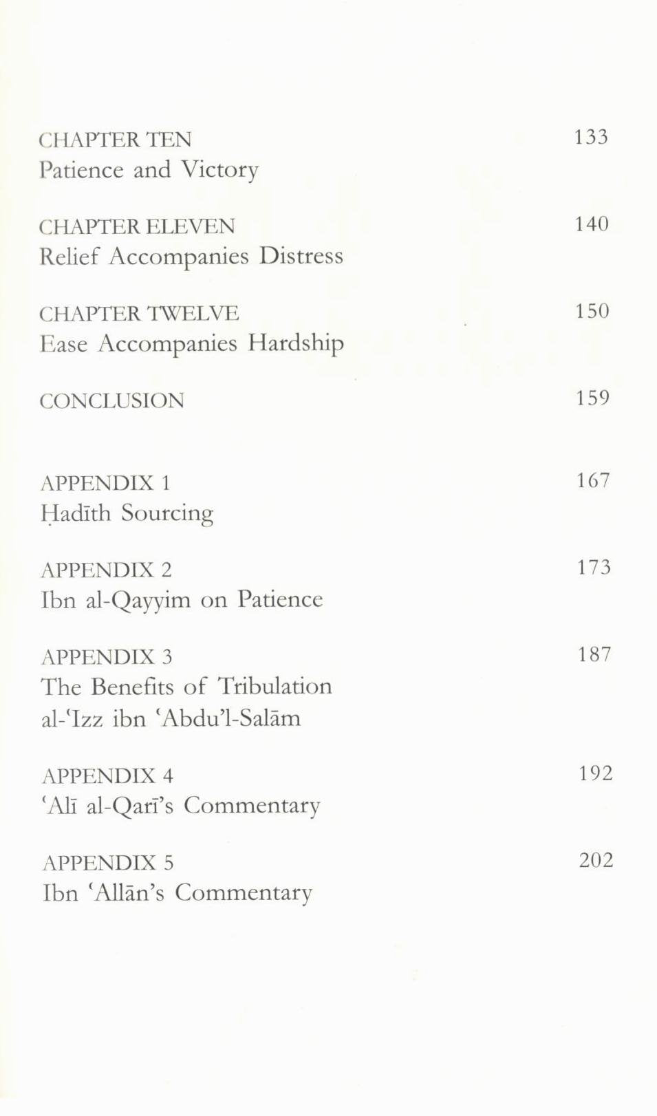 The translator has added appendices which comprise further explanations to the hadith by Mulla ‘Ali al-Qari, ibn ‘Allan, and ibn ‘Uthaymin.