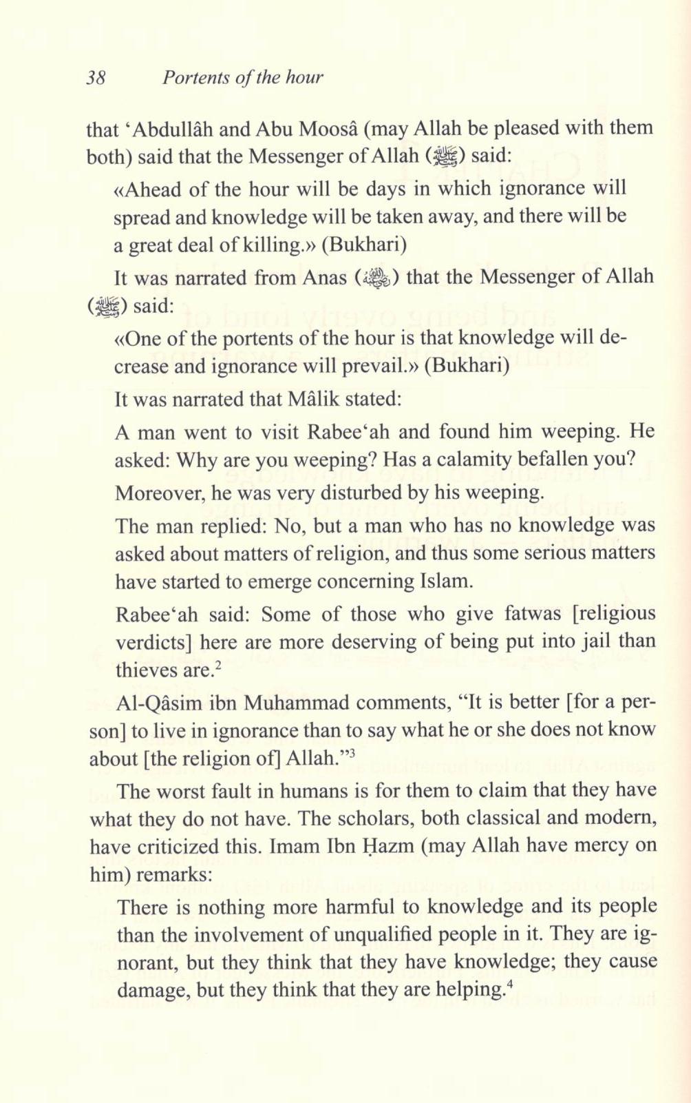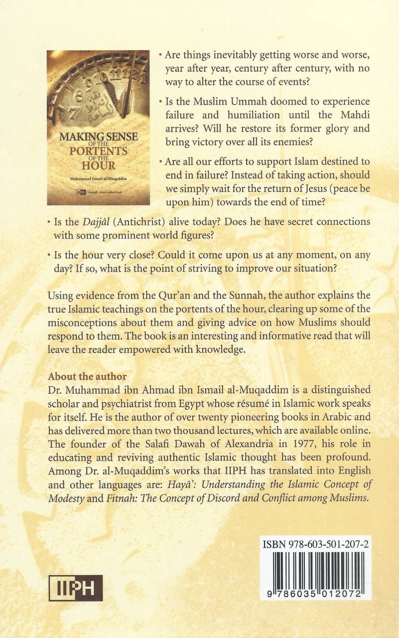 About the Book: In 'Making Sense of the Portents of the Hour', Shaykh Muhammad Ismail al-Muqaddim uses evidence from the Qur’an and the Sunnah to explain the true Islamic teachings on the signs before the Day of Judgment and clear up some of the misconceptions about them and giving advice on how Muslims should respond to them. The book answers questions such as: Is the Dajjâl (Antichrist) alive today? Does he have secret connections with some prominent world figures? Is the hour very close? Could it come upon us at any moment, on any day? If so, what is the point of striving to improve our situation? Is the Muslim Ummah doomed to experience failure and humiliation until the Mahdi arrives? Will he restore its former glory and bring victory over all its enemies?