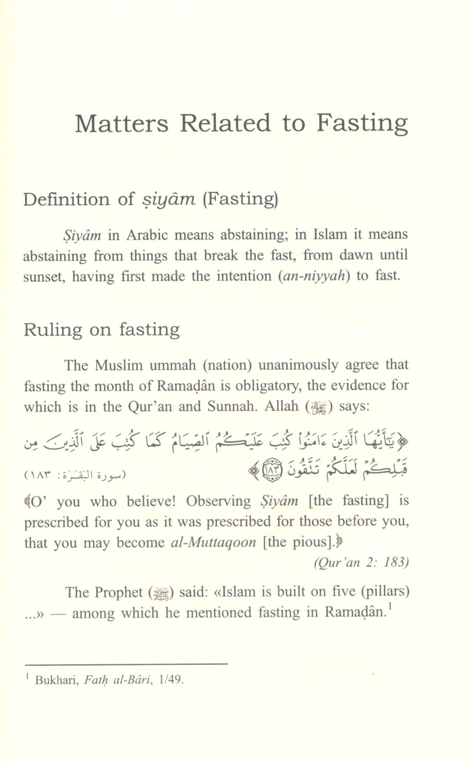 - Matters Related to Fasting Matters Related to Fasting