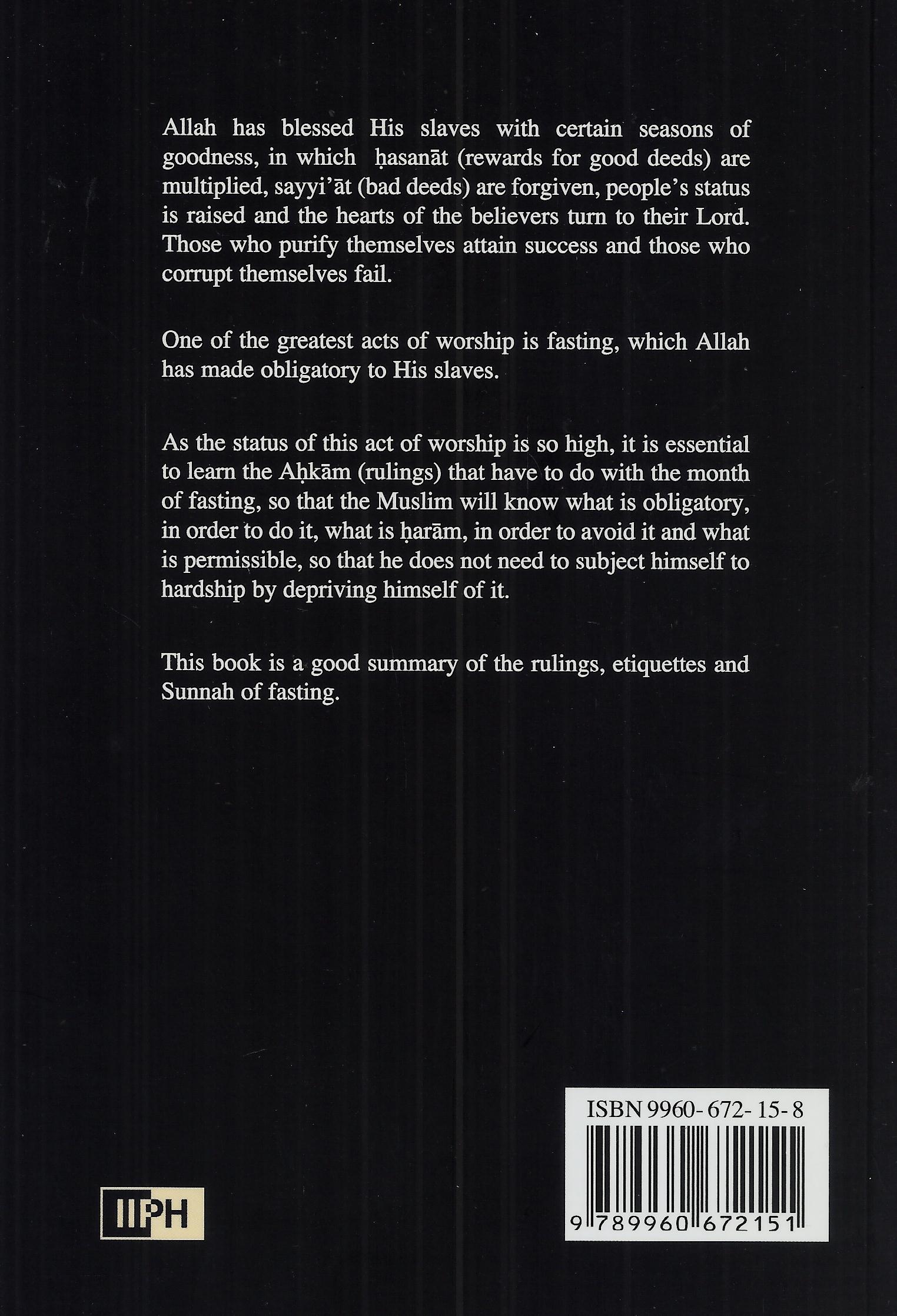 About the Book: Allah has blessed His slaves with certain seasons of goodness, in which rewards for good deeds are multiplied, bad deeds are forgiven, people’s status is raised, the hearts of the believers turn to their Lord, those who purify themselves attain success, and those who corrupt themselves fail. Ramadan, the month of fasting, is one such season. Fasting is one of the greatest acts of worship, and Allah has made fasting obligatory for His slaves. As the status of this act of worship is so high, it is essential to learn the rulings that have to do with the month of fasting, so that the Muslims will know what is obligatory, in order to do it, what is forbidden, in order to avoid it, and what is permissible, so that they do not need to subject themselves to hardship by depriving themselves of it. Matters Related to Fasting is a good summary of the rulings, the etiquette, and the manner of fasting according to the Sunnah.