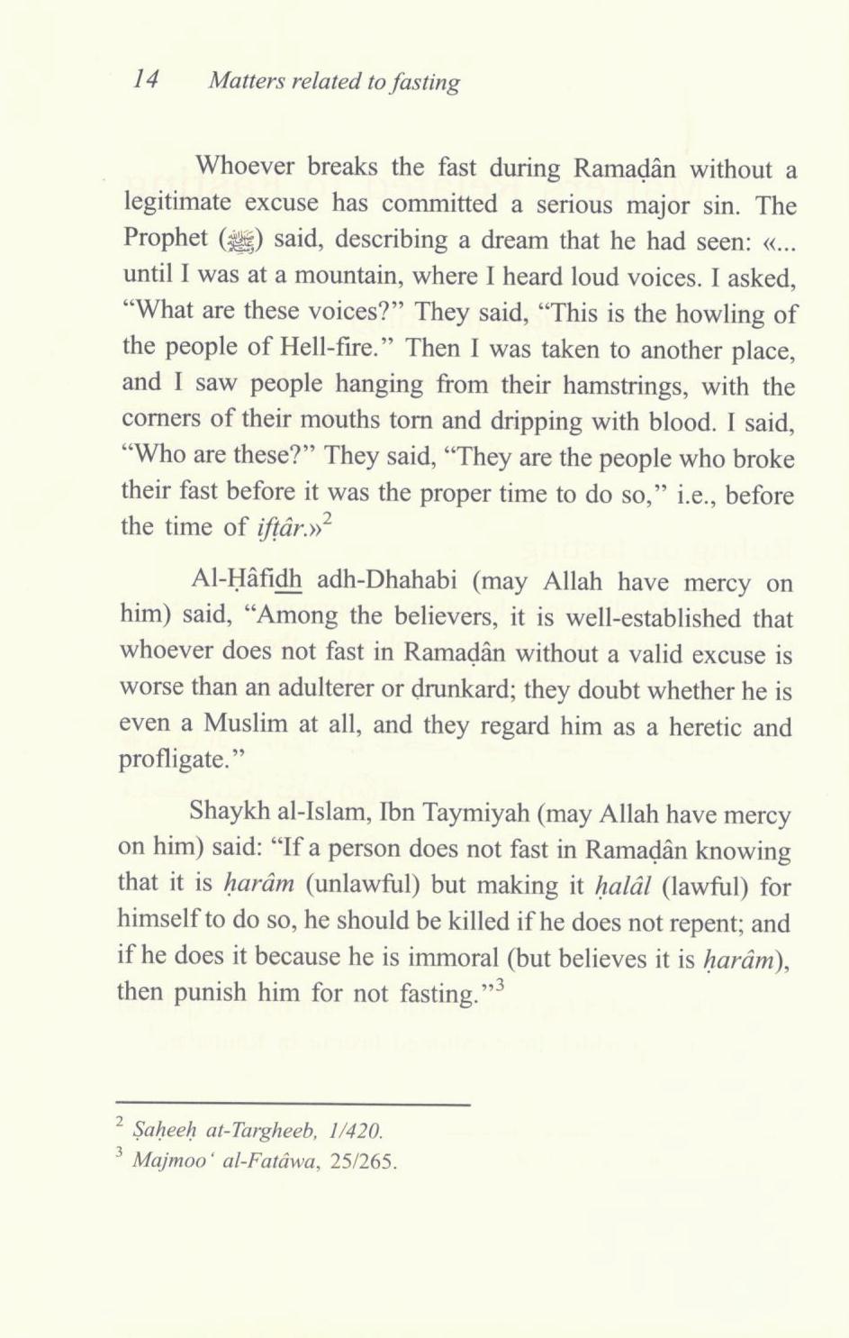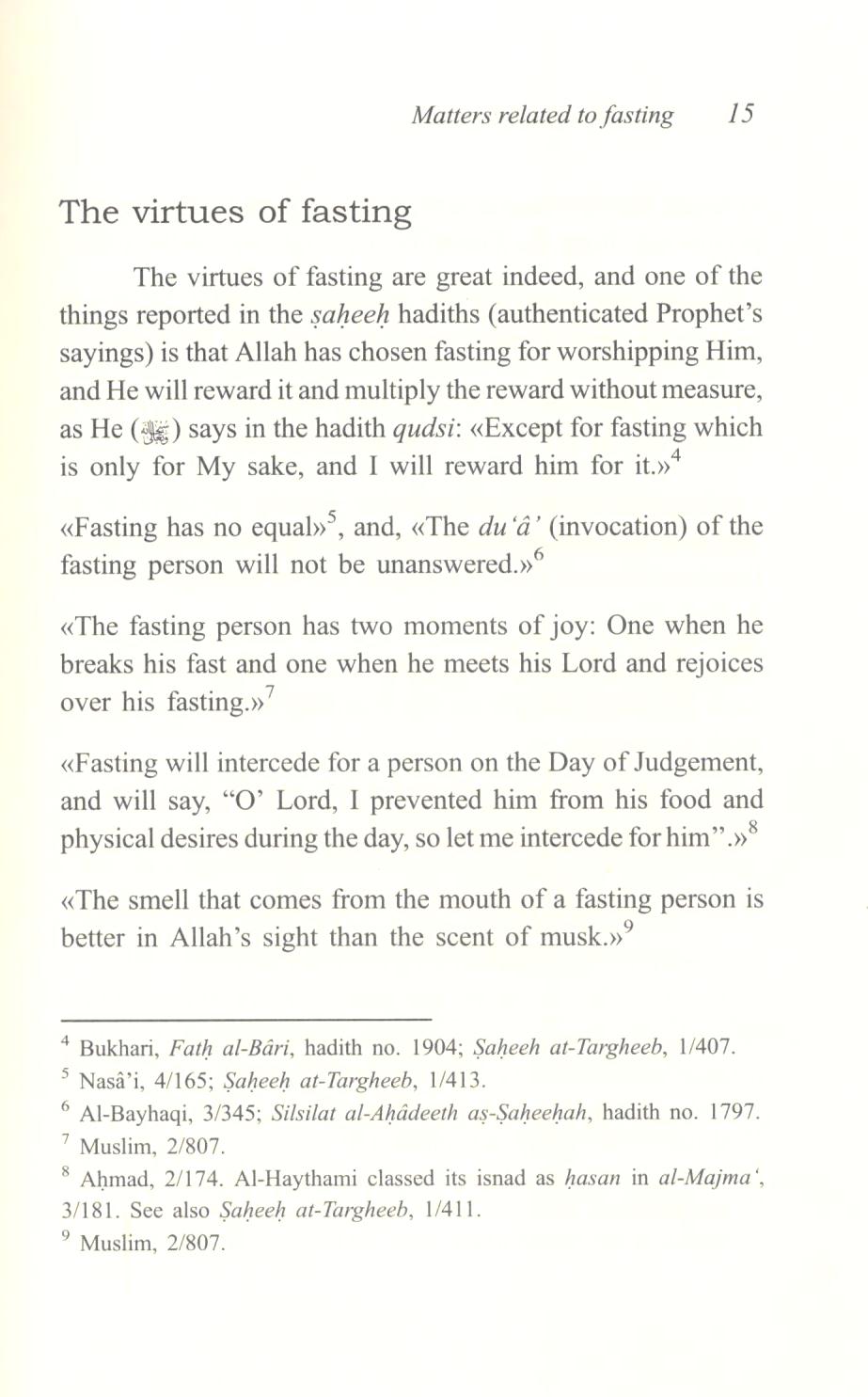 Matters Related to Fasting