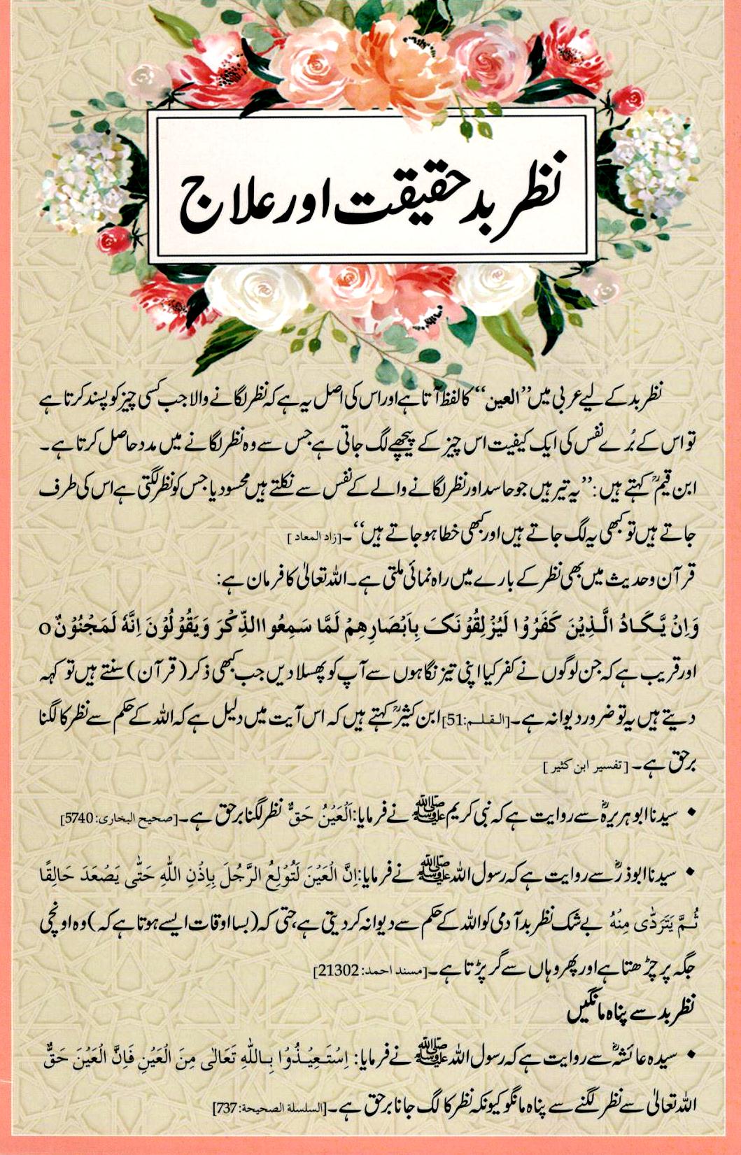 عنوان: نظر بد - حقیقت اور علاج