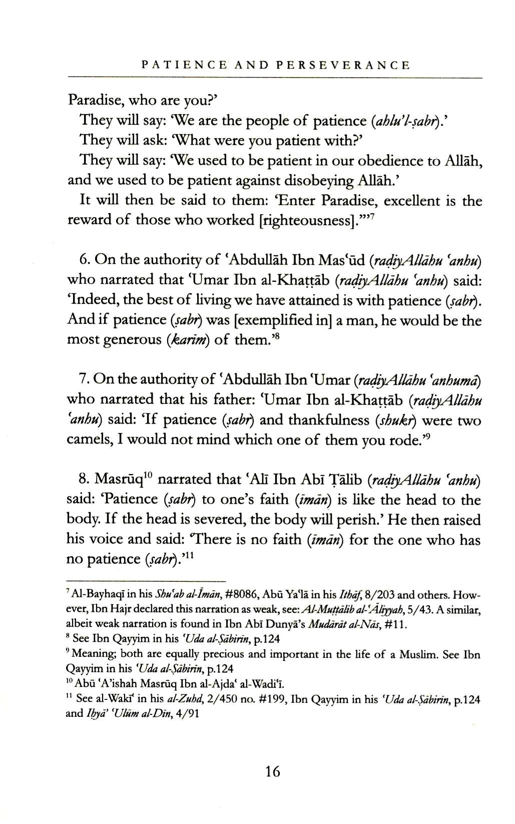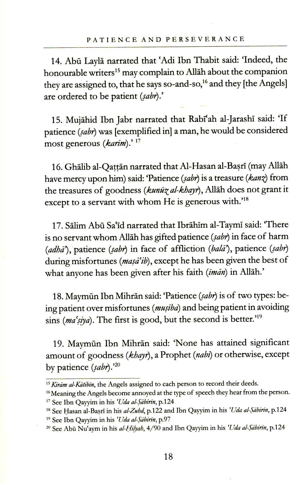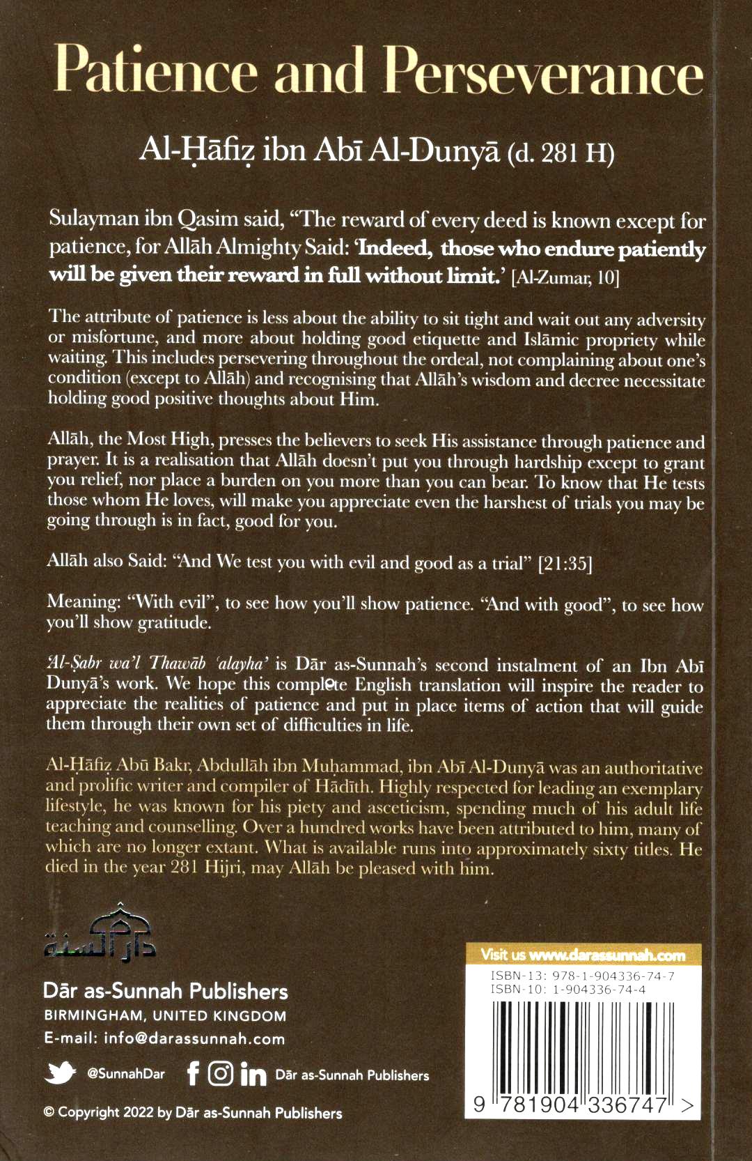Sulayman ibn Qasim said, “The reward of every deed is known except for patience, for Allah Almighty said: ‘Indeed, those who endure patiently will be given their reward in full without limit.’ [Al-Zumar, 10] The attribute of patience is less about the ability to sit tight and wait out any adversity or misfortune, and more about holding good etiquette and Islamic propriety while waiting. This includes persevering throughout the ordeal, not complaining about one’s condition (except to Allah) and recognizing that Allah’s wisdom and decree necessitate holding good positive thoughts about Him. Allah, the Most High, presses the believers to seek His assistance through patience and prayer. It is a realization that Allah doesn’t put you through hardship except to grant you relief, nor place a burden on you more than you can bear. To know that He tests those whom He loves, will make you appreciate even the harshest of trials you may be going through is in fact, good for you. Allah also Said: “And We test you with evil and good as a trial” [21:35] Meaning: “With evil”, to see how you’ll show patience. “And with good”, to see how you’ll show gratitude. ‘Al-Sabr wa’l Thawab ‘alayha’ is Dar as-Sunnah’s second instalment of an Ibn Abi Dunya’s work. We hope this complete English translation will inspire the reader to appreciate the realities of patience and put in place items of action that will guide them through their own set of difficulties in life.