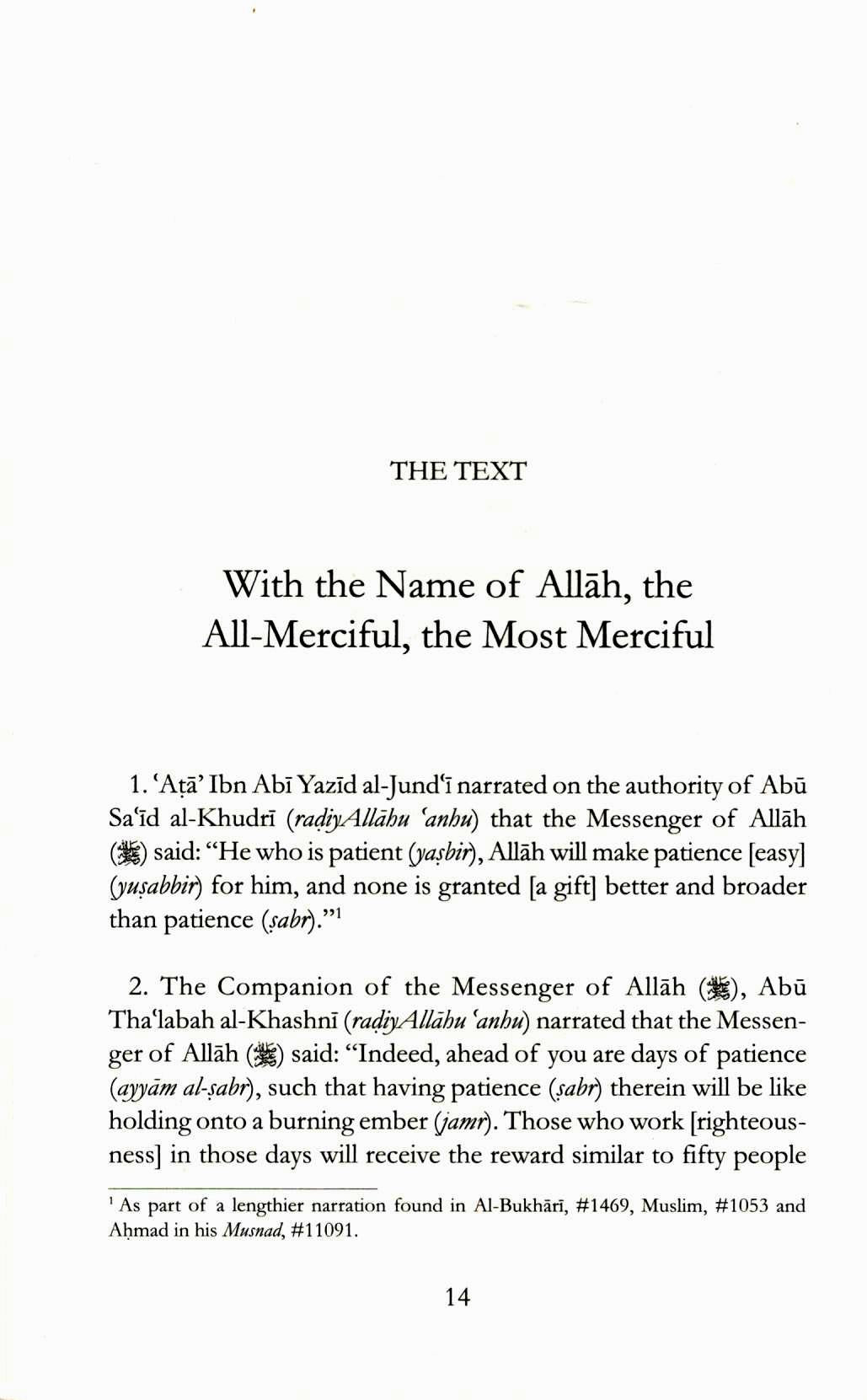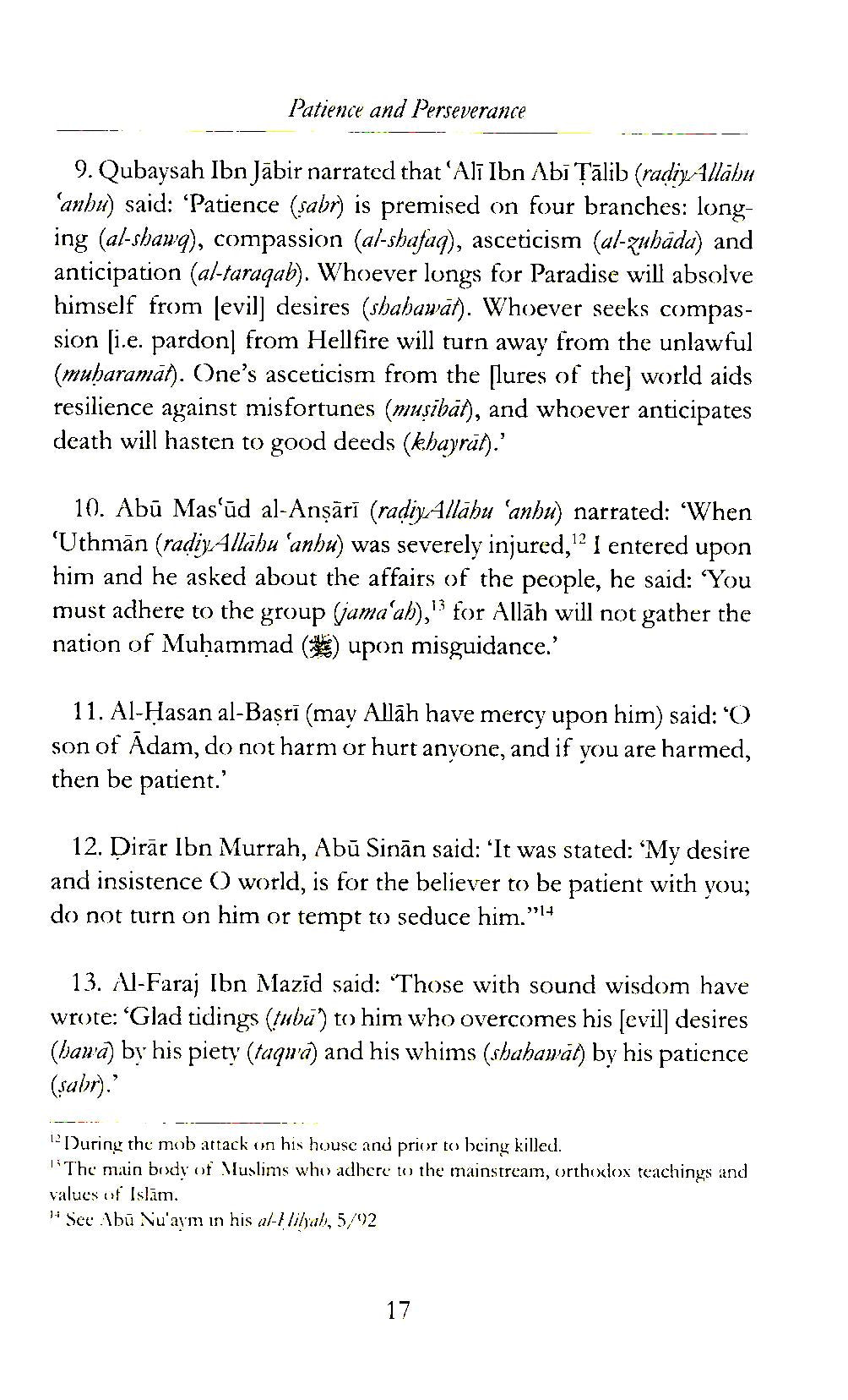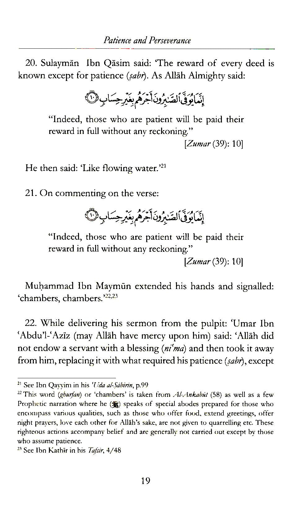 Sulayman ibn Qasim said, “The reward of every deed is known except for patience, for Allah Almighty said: ‘Indeed, those who endure patiently will be given their reward in full without limit.’ [Al-Zumar, 10] The attribute of patience is less about the ability to sit tight and wait out any adversity or misfortune, and more about holding good etiquette and Islamic propriety while waiting. This includes persevering throughout the ordeal, not complaining about one’s condition (except to Allah) and recognizing that Allah’s wisdom and decree necessitate holding good positive thoughts about Him. Allah, the Most High, presses the believers to seek His assistance through patience and prayer. It is a realization that Allah doesn’t put you through hardship except to grant you relief, nor place a burden on you more than you can bear. To know that He tests those whom He loves, will make you appreciate even the harshest of trials you may be going through is in fact, good for you. Allah also Said: “And We test you with evil and good as a trial” [21:35] Meaning: “With evil”, to see how you’ll show patience. “And with good”, to see how you’ll show gratitude. ‘Al-Sabr wa’l Thawab ‘alayha’ is Dar as-Sunnah’s second instalment of an Ibn Abi Dunya’s work. We hope this complete English translation will inspire the reader to appreciate the realities of patience and put in place items of action that will guide them through their own set of difficulties in life.