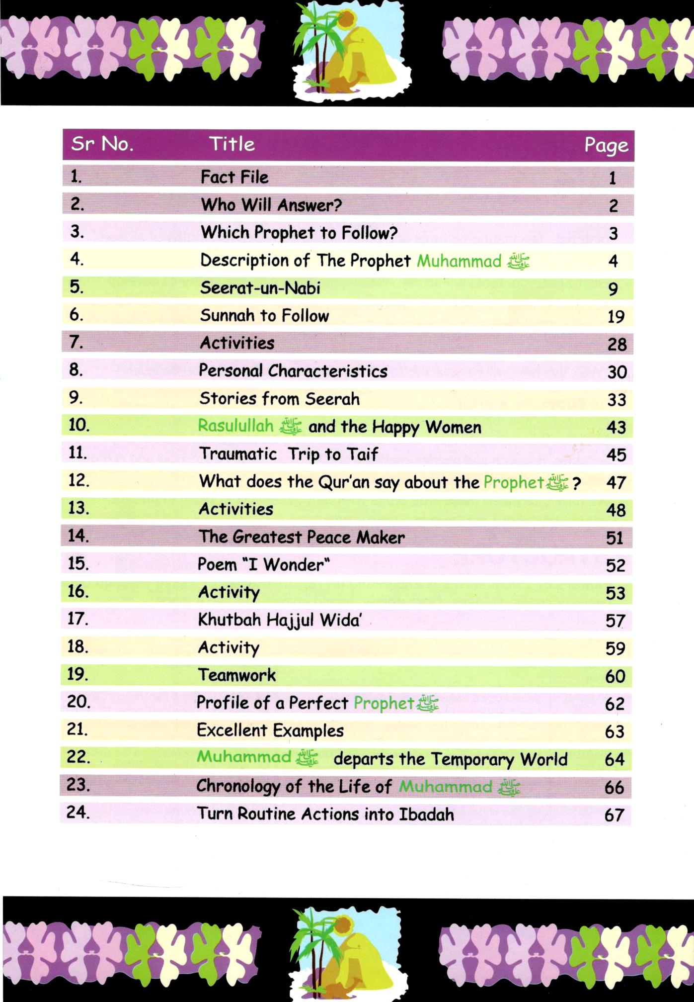 About the Book: This book is essentially written to break through all the stereotype ways of introducing the beautiful personality of Prophet (SAW). Topics pertaining to Islamic concepts with reference to the Seerah of Prophet Muhammad SAW are discussed in an interesting way to motivate young minds and hearts to emulate his character.