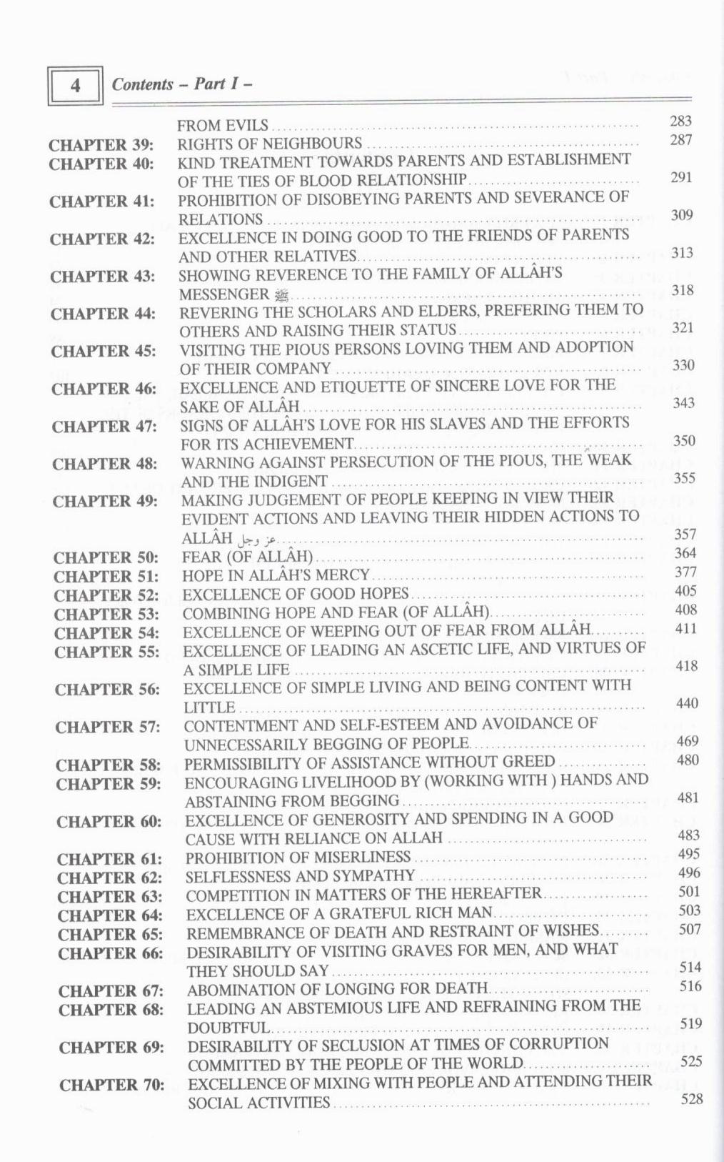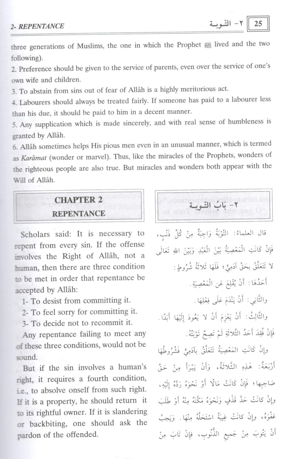 Riyad-us-Saliheen, with its conciseness and direct approach, beautifully summarises the religion of Islam. I found this book more useful than other books of Hadith for two reasons: