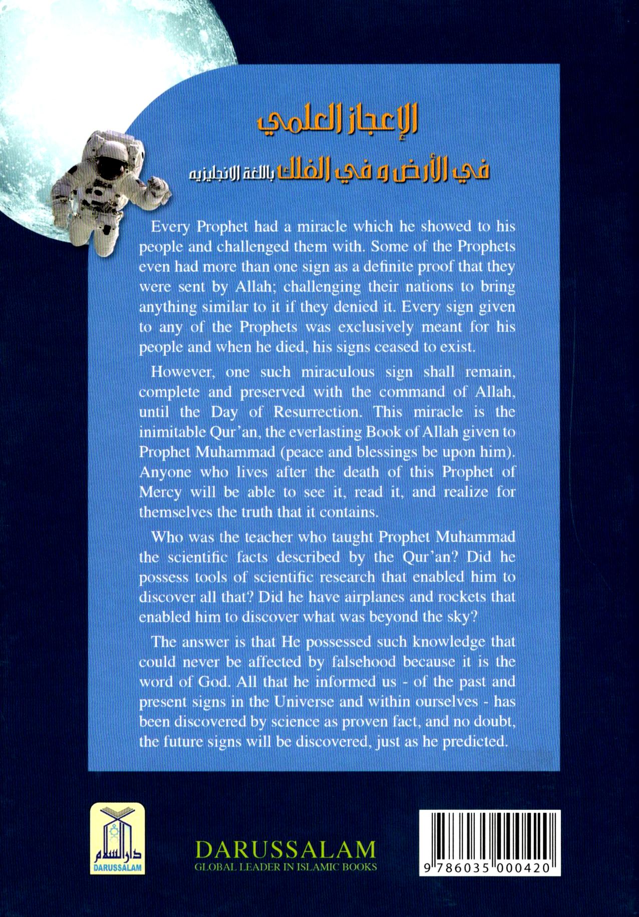 About the Book: Every Prophet had a miracle which he showed to his people and challenged them with. Some of the Prophets even had more than one sign as definite proof that. they were sent by Allah; challenging their nations to bring anything similar to it if they denied it. Every sign given to any of the Prophets was exclusively meant for his people and when he died, his signs ceased to exist. However, one such miraculous sign shall remain, complete and preserved with the command of Allah, until the Day of Resurrection. This miracle is the inimitable Qur'an, the everlasting Book of Allah given to Prophet Muhammad (peace and blessings be upon him). Anyone who lives after the death of this Prophet of Mercy will be able to see it, read it, and realize for themselves the truth that it contains. Who was the teacher who taught Prophet Muhammad the scientific facts described by the Qur'an? Did he possess tools of scientific research that enabled him to discover all that? Did he have airplanes and rockets that enabled him to discover what was beyond the sky? The answer is that He possessed such knowledge that could never be affected by falsehood because it is the word of God. All that he informed us - of the past and present signs in the Universe and within ourselves - has been discovered by science as proven fact, and no doubt, the future signs will be discovered, just as he predicted.