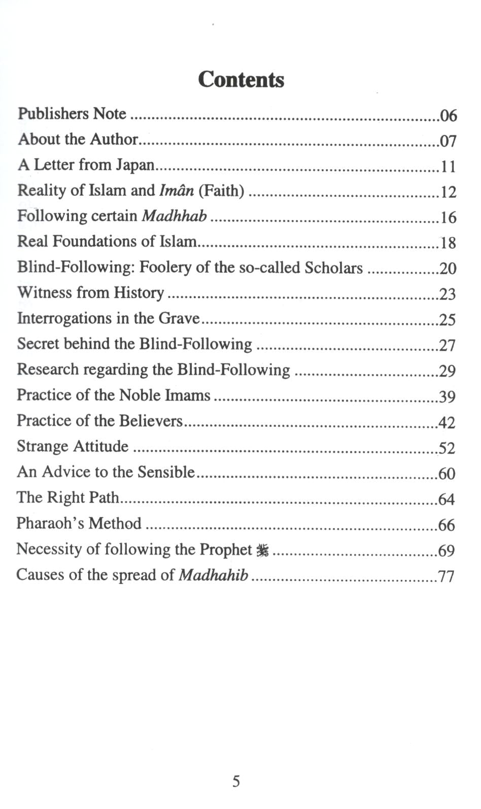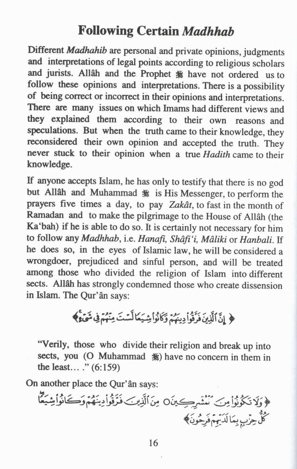 In this sense, the author has described the difference between different Madhahib (madhabs/mazhabs), and their views and urged to follow only the Quran and Sunnah.