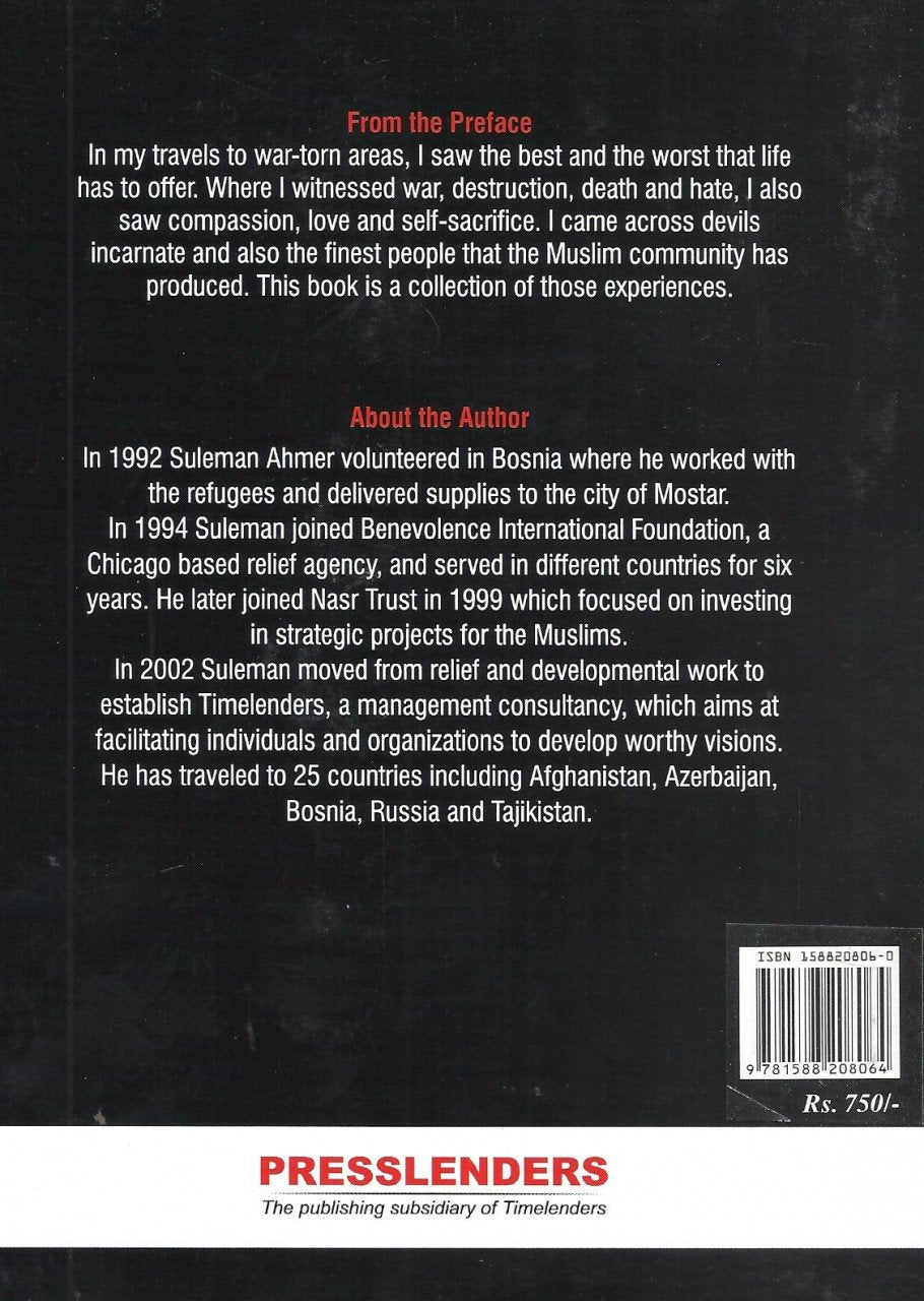 About the Book: In 1992, by the grace of Allah (swt), I bid farewell to Engineering to volunteer in Bosnia. In my travels to war-torn areas since then, I have seen the best and the worst that life has to offer. Where I witnessed war, destruction, death, suffering, captivity, hate and rage, I also saw compassion, love, self-sacrifice, altruism and dedication to Allah (swt). While I came across devils incarnate, I also met the finest people that the Muslim Ummah has produced in these times.