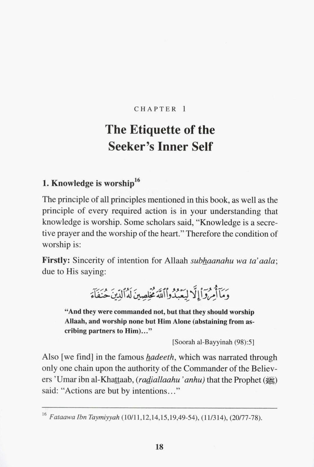 CHAPTER 1: The Etiquette of the Seekers Inner Self Knowledge is Worship.