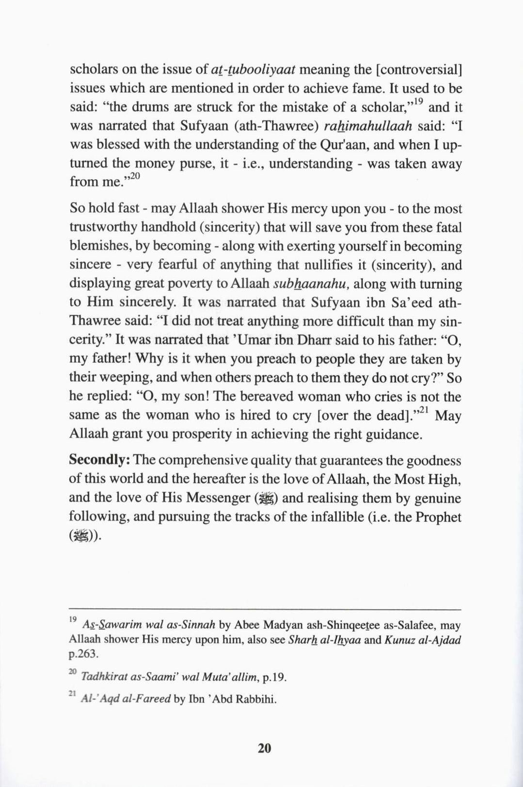 *Be adherent to the path of the Pious Predecessors: Ibn Taymiyyah said, “Ahlus-Sunnah are the finest selection of Muslims and the best people towards people.” “And verily, this is my Straight Path, so follow it, and follow not (other) paths, for they will separate you away from His Path.” [Surah Al-An-aam, v:153]