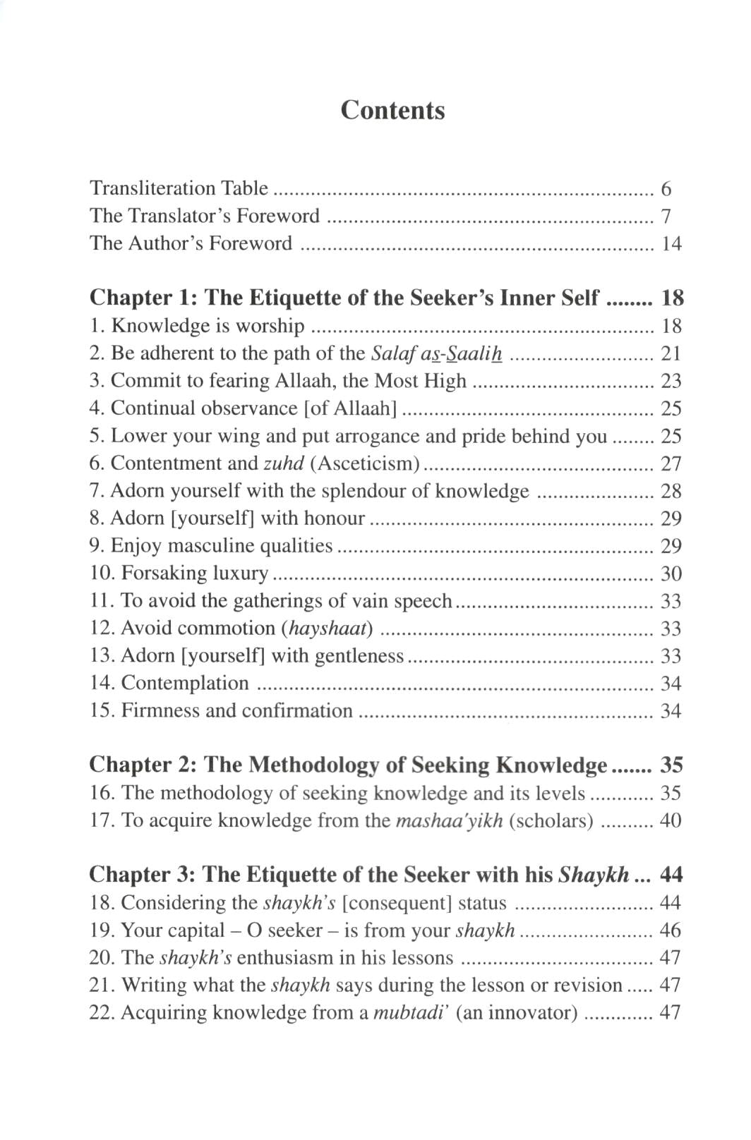 As knowledge is not attained primarily from the books, rather it is necessary to take from a shaykh in order to perfect the keys of knowledge with him. The student should likewise maintain a certain etiquette when with the shaykh. Abstain from arguing in front of him, talking excessively, interrupting him continually, excessive questions etc. Avoid calling him by his first name, rather call him shaykhee, or ya shaykhanaa. Just as you would not refer to your father by his name.