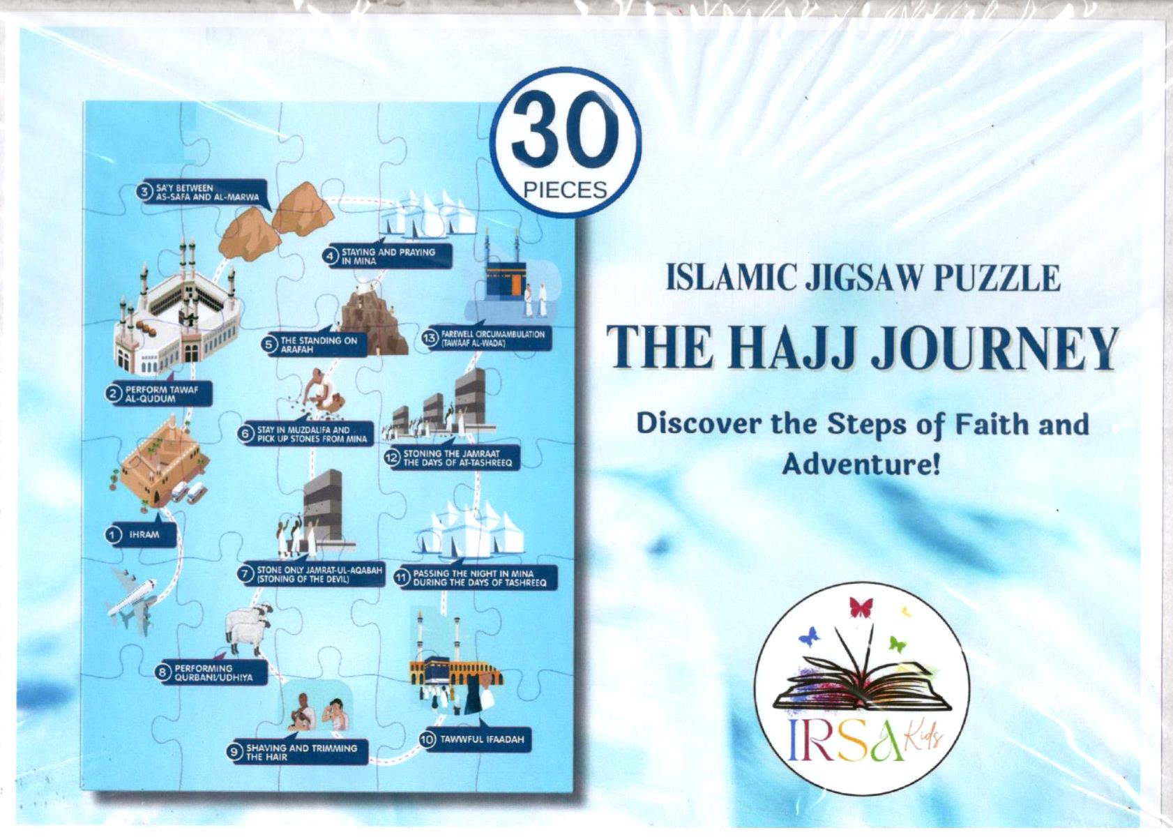 Explore the journey of Hajj with this 30-piece puzzle. Includes a map of the key locations of Hajj. Teaches about Hajj while developing problem-solving skills.