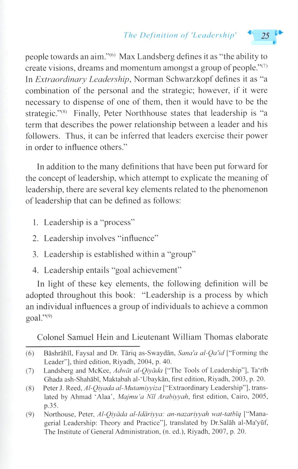 About the Book: In this work أركان القيادة, Dr. Yusef bin Othman Al-Huzaim offers an insightful awareness of the many theories and practices of leadership deriving from Islamic heritage and the modern American experience. Dr Al Huzaim combines Western management theory and practices with Islamic principles. From an Islamic standpoint, Dr. Al Huzaim does not rely on western philosophy to establish principles of leadership, but he draws on them to demonstrate the vast wealth of literature on the subject (a point he emphasizes to the Arab world for its lack of specialized works in this field) while only tending to draw on those that are in agreement with the truth.