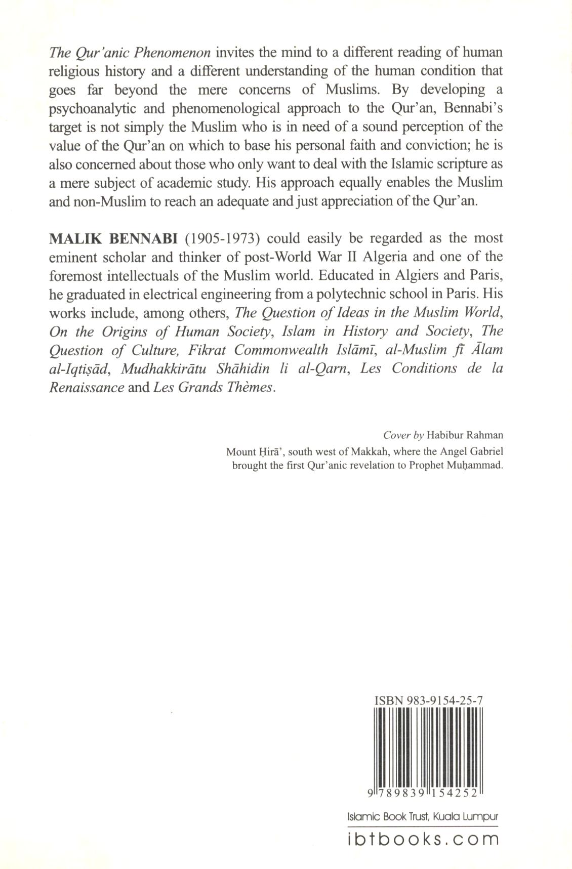 Bennabi’s reformulation of the Qur’an’s miracle within the wider philosophical and historical context of the religious phenomenon and prophetic movement is quite unique. It invites the mind to a different reading of human religious history and a different understanding of the human condition that goes far beyond the mere concerns of Muslims. Beginning with a catalogue of ancient and contemporary attacks on the Qur’an, this expansive book provides unique insights into the holy text’s immaculate preservation throughout its history, as well as exploring many of the accusations levelled against it. The reception of divine revelations, Prophet Muhammad’s role in teaching and disseminating these verses, the text’s compilation under his guidance and the setting of its final external shape shortly after his death, are meticulously and scientifically examined alongside such topics as the origins of Arabic, its palaeography and orthography, the so-called Mushaf of Ibn Mas’ud, and the strict methodology employed in assembling textual fragments.