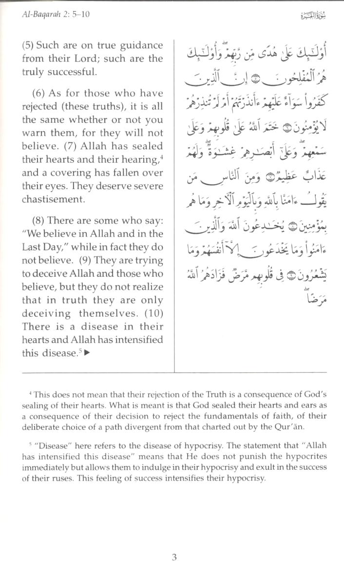 This is an accomplished translation of the Quran which also contains brief tafsir notes. It beautifully conveys the message of the Quran and the footnotes are useful in gaining further insights. Although the font size is quite small, the book is easy to carry and the cover quality is quite commendable.