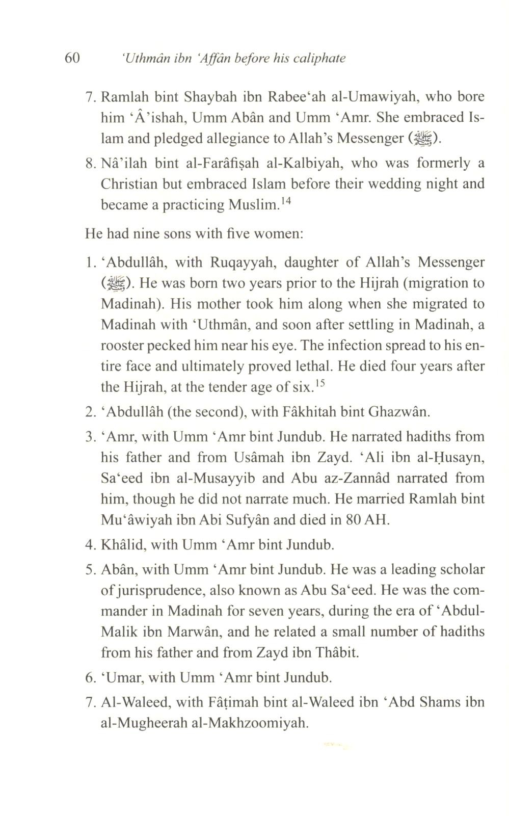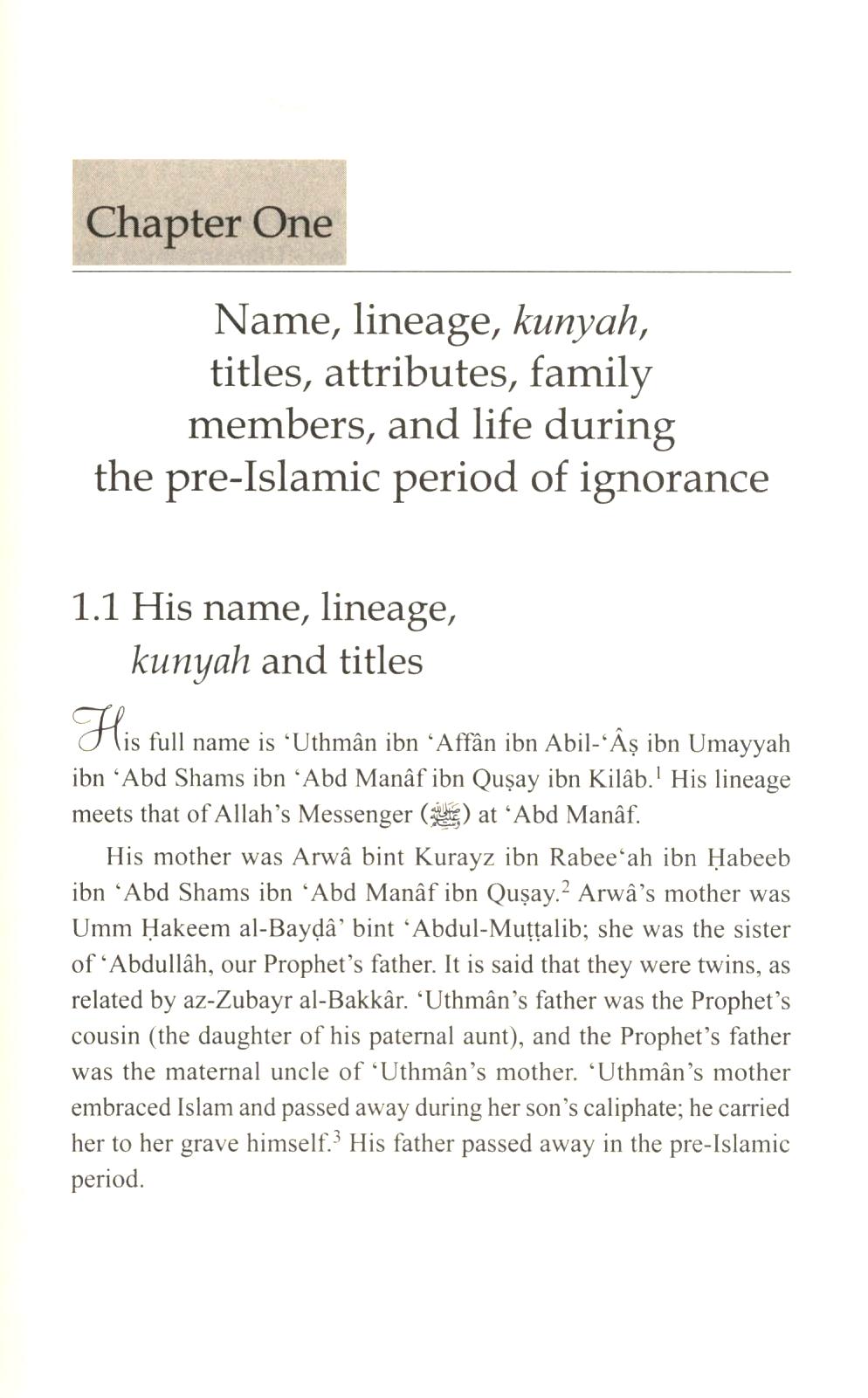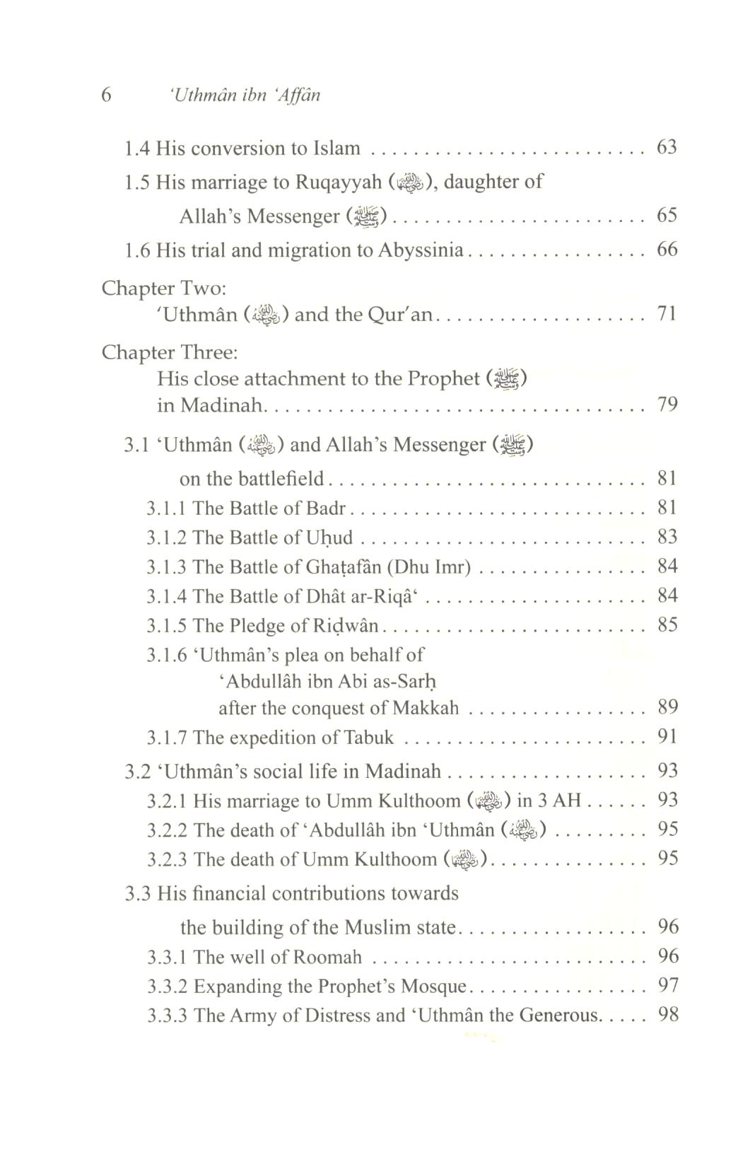 The author has also given us insight into the life of Dhun-Noorayn (Uthman, the ‘Possessor of the Two Lights’) before he became the caliph. Readers discover his attachment to the Prophet (sa), his relationship with the Qur’an and his generous financial contributions towards the founding of the Islamic state. All in all, this book will prove to be a valuable resource on Islamic history.