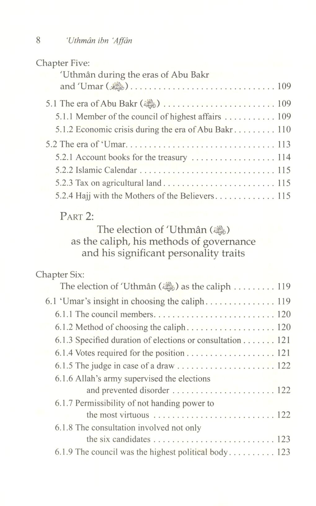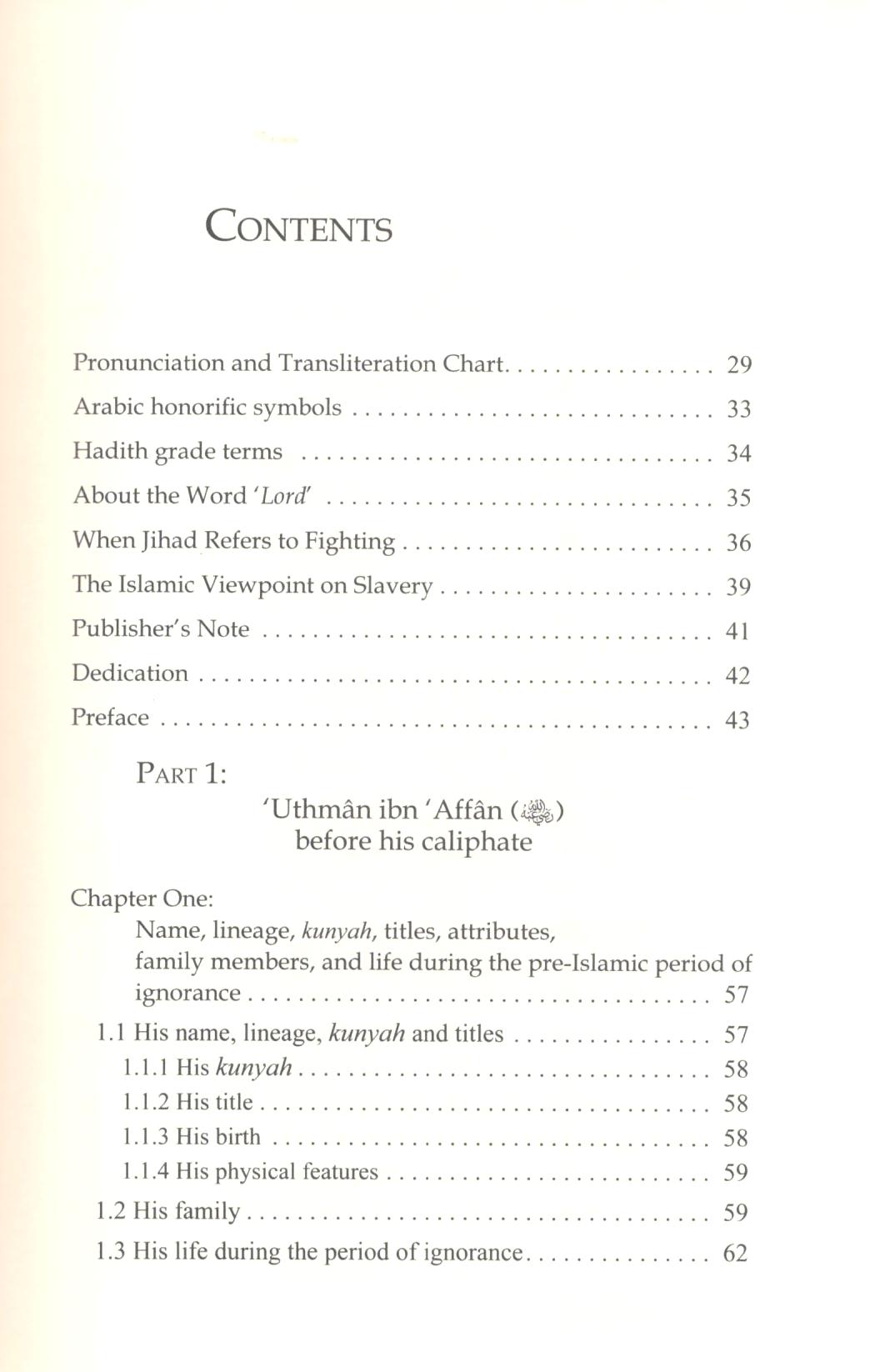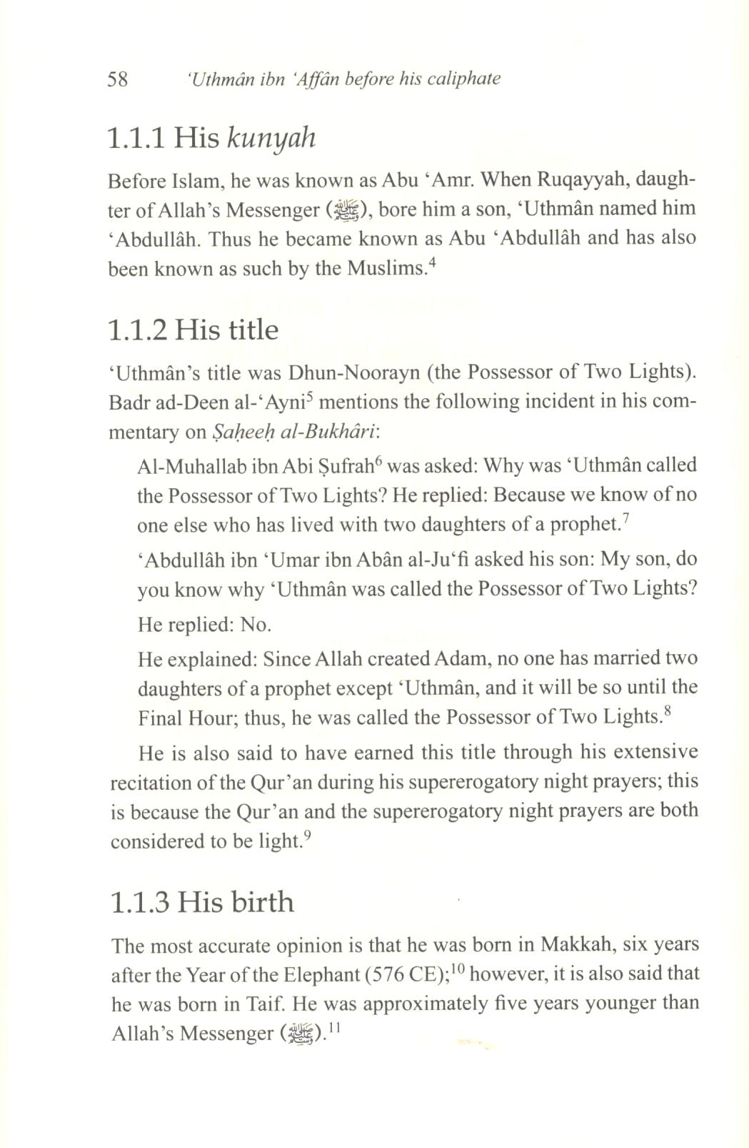 The author has also given us insight into the life of Dhun-Noorayn (Uthman, the ‘Possessor of the Two Lights’) before he became the caliph. Readers discover his attachment to the Prophet (sa), his relationship with the Qur’an and his generous financial contributions towards the founding of the Islamic state. All in all, this book will prove to be a valuable resource on Islamic history.