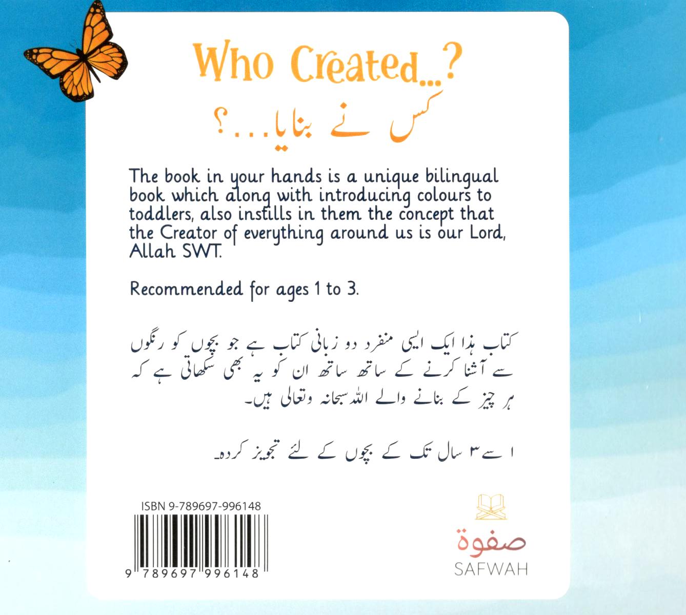 This book is a unique bilingual board book, which introduces colours to toddlers and instills in them the concept that the Creator of everything around us is Allah SWT.