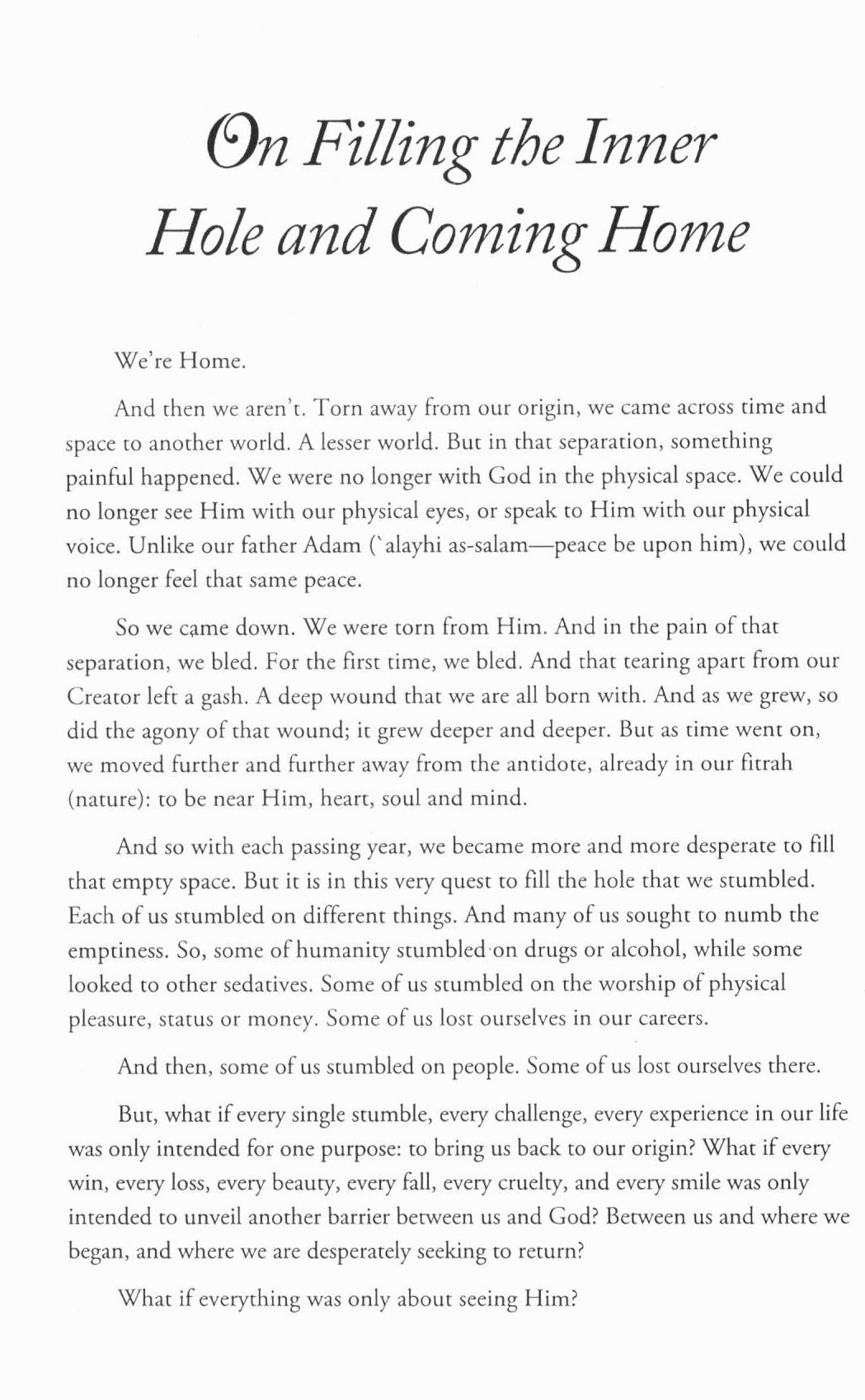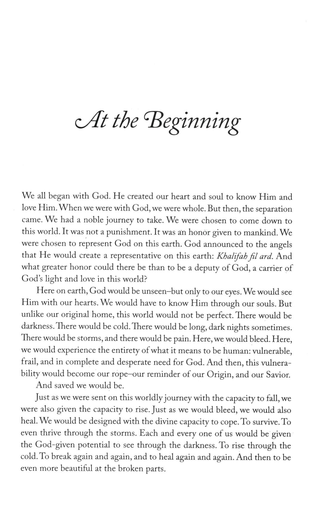 This life and our entire journey here, is not an end in itself. It is a purposeful process, designed by God to shape our hearts. To prepare our souls for the Final Meeting with Him. We must allow the process to refine and remake us. And our wounds are a part of that process. It will hurt. It will seem like the end so many times. But it is not the end. Our journey will keep going and we can rise out of our pain, stronger.