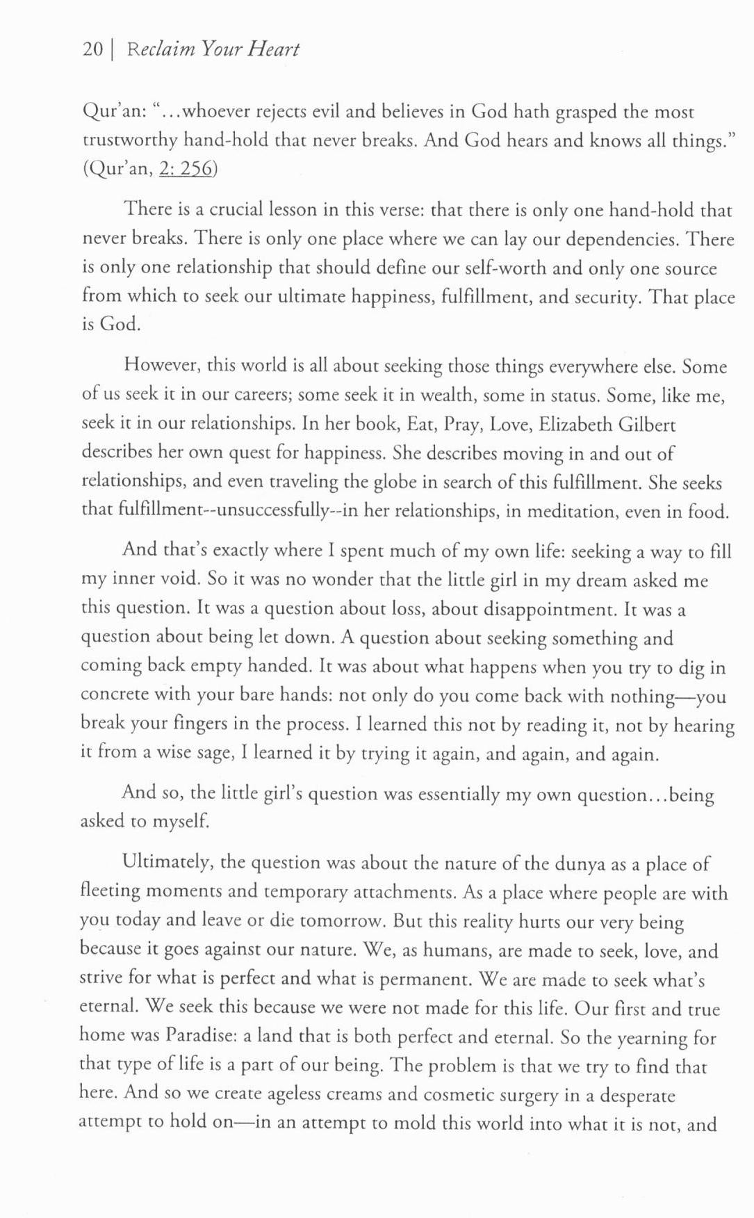 Reclaim Your Heart is not just a self-help book. It is a manual about the journey of the heart in and out of the ocean of this life. It is a book about how to keep your heart from sinking to the depths of that ocean, and what to do when it does. It is a book about redemption, about hope, about renewal. Every heart can heal, and each moment is created to bring us closer to that transformative return. Reclaim Your Heart is about finding that moment when everything stops and suddenly looks different. It is about finding your own awakening. And then returning to the better, truer, and freer version of yourself. Many of us live our lives, entrapped by the same repeated patterns of heartbreak and disappointment. Many of us have no idea why this happens. Reclaim Your Heart is about freeing the heart from this slavery. It is about the journey in an out of life’s most deceptive traps. This book was written to awaken the heart and provide a new perspective on love, loss, happiness, and pain. Providing a manual of sorts, Reclaim Your Heart will teach readers how to live in this life without allowing life to own you. It is a manual of how to protect your most prized possession: the heart.