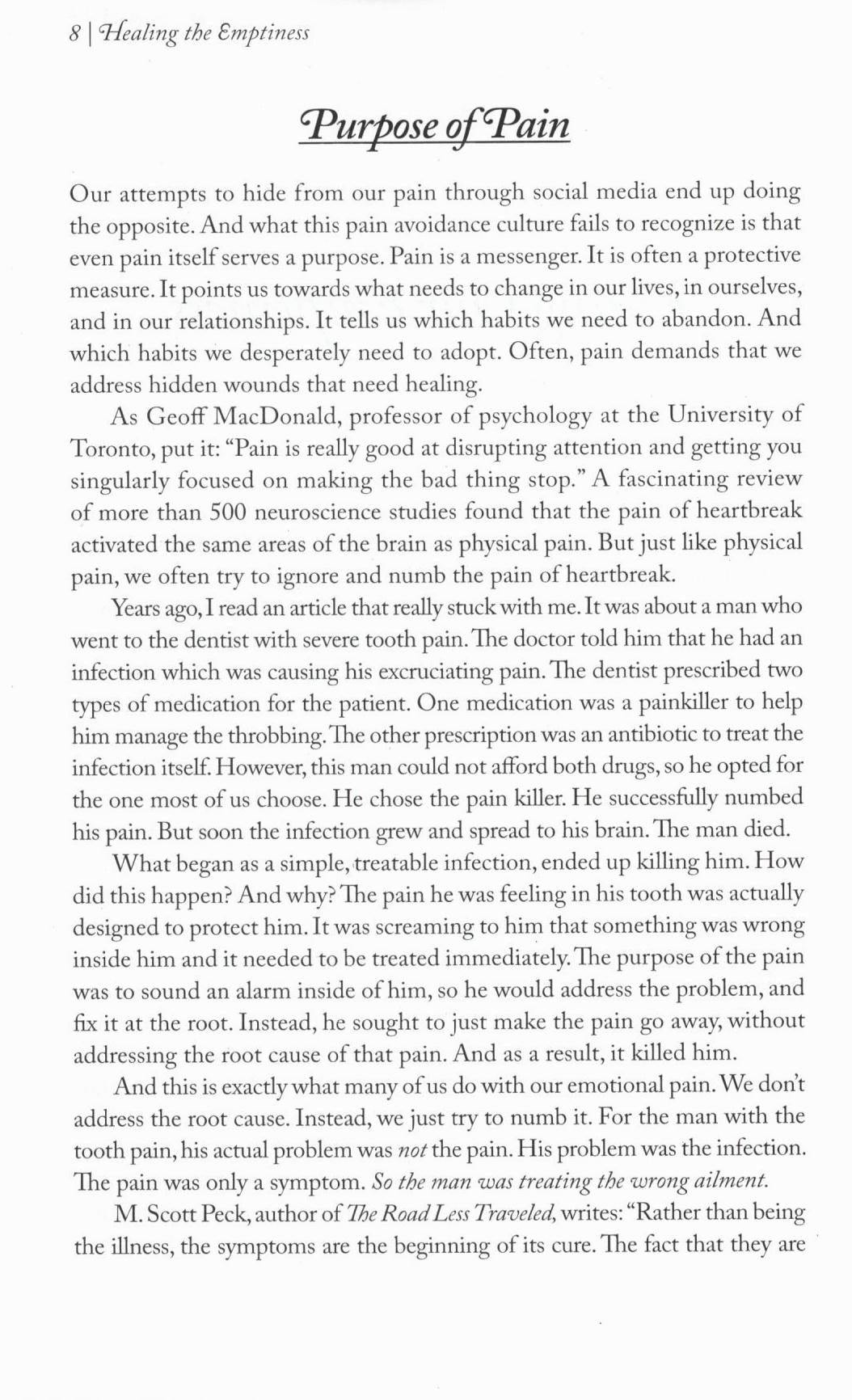 This book is about learning why we suffer and how to stop our pain from destroying us. It is a spiritual and psychological manual for healing and growth through our pain. It is about finding peace and purpose, no matter what we’ve been through.